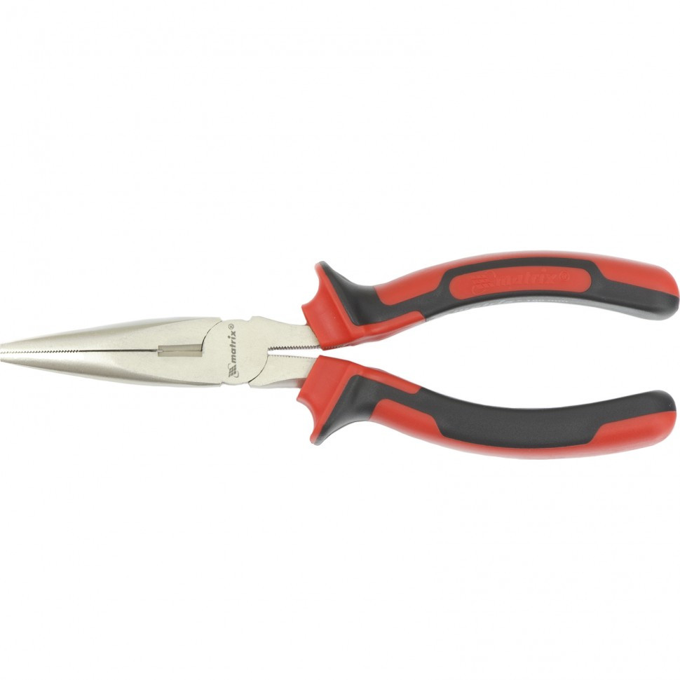 Длинногубцы прямые Nickel, 180 мм, никелированные, двухкомпонентные рукоятки Matrix