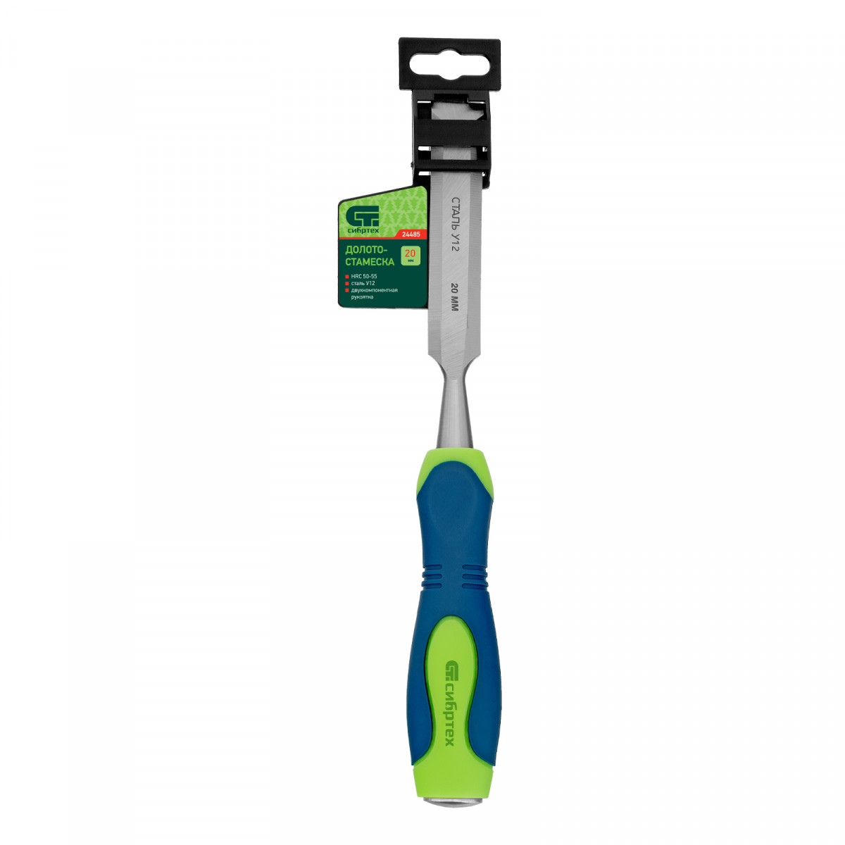 Долото-стамеска Сибртех 24485 с двухкомпонентной рукояткой — ручной инструмент с шириной режущей части 20 мм для столярных и плотницких работ с массивом натурального дерева. Под ударом киянки или небольшого молотка долото-стамеска легко врезается в древесину любых пород, что позволяет получать аккуратные прямоугольные пазы, снимать фаски, зачищать гнезда и т.д.