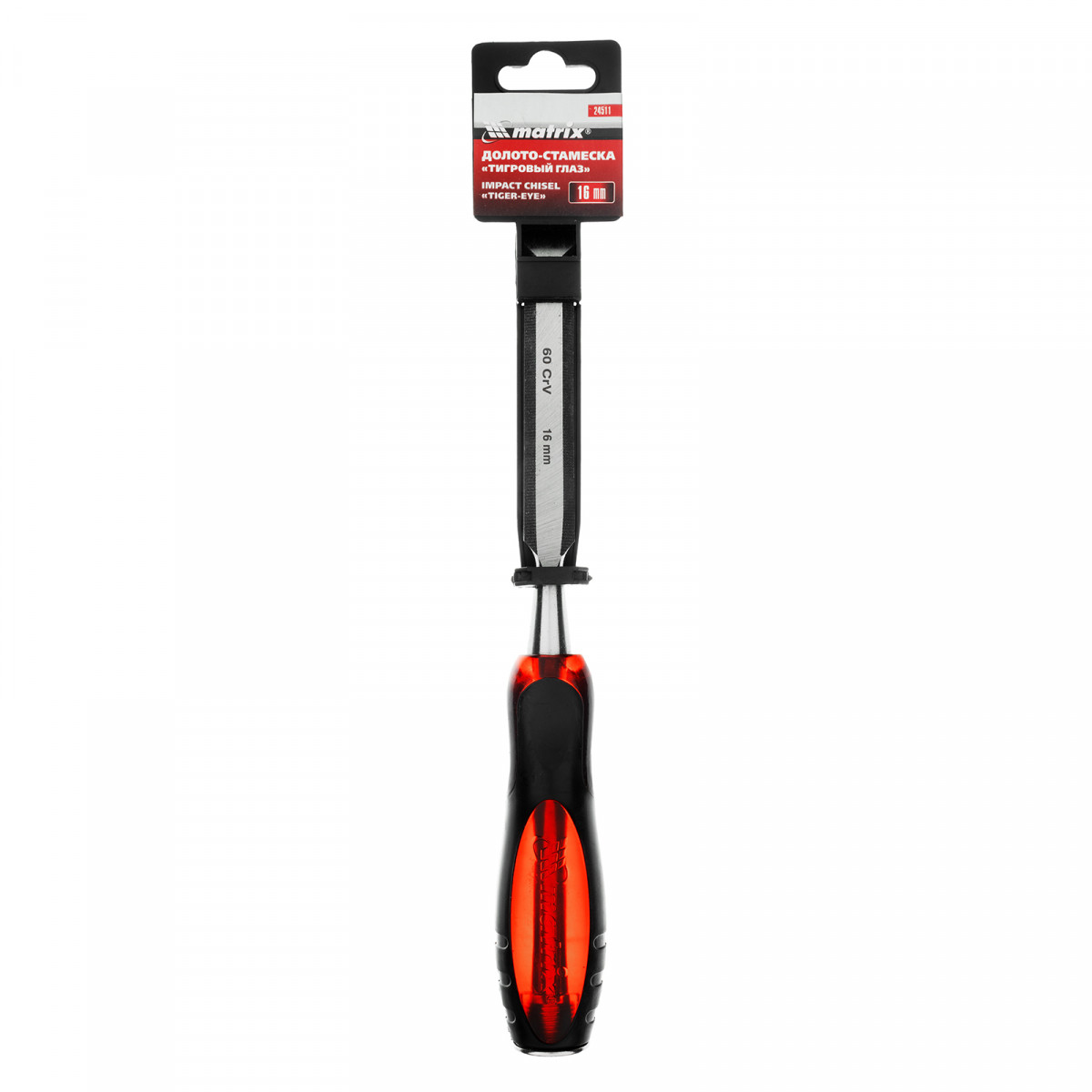 Долото-стамеска Matrix «Тигровый глаз» 24511 с полотном шириной 16 мм и двухкомпонентной обрезиненной рукояткой используется в столярном и плотницком деле, в производстве мебели. Позволяет вырезать углубления, формировать пазы, зачищать шипы и гнезда, снимать фаски. Инструмент выдерживает удары киянкой или молотком, т. к. металлический затыльник защищает его от деформации. Долото относится к профессиональному ручному инструменту, но может применяться и в домашних условиях.