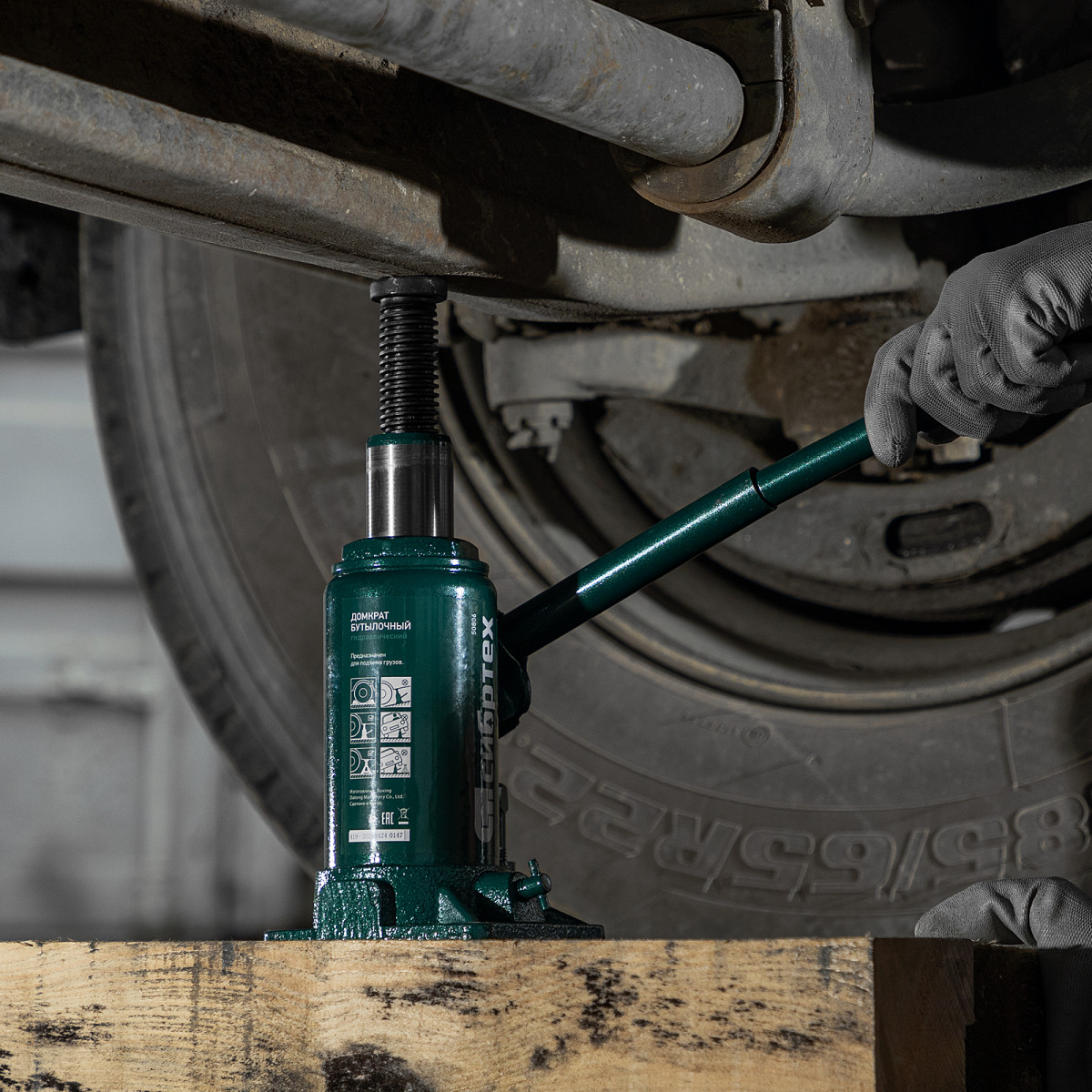 Домкрат гидравлический бутылочный Сибртех 50806 предназначен для подъема грузов массой до 10 т на высоту от 190 до 370 мм. Не требует больших усилий от пользователя и значительно облегчает рабочий процесс. Домкрат будет полезен при проведении техобслуживания машины в автосервисе или гараже.