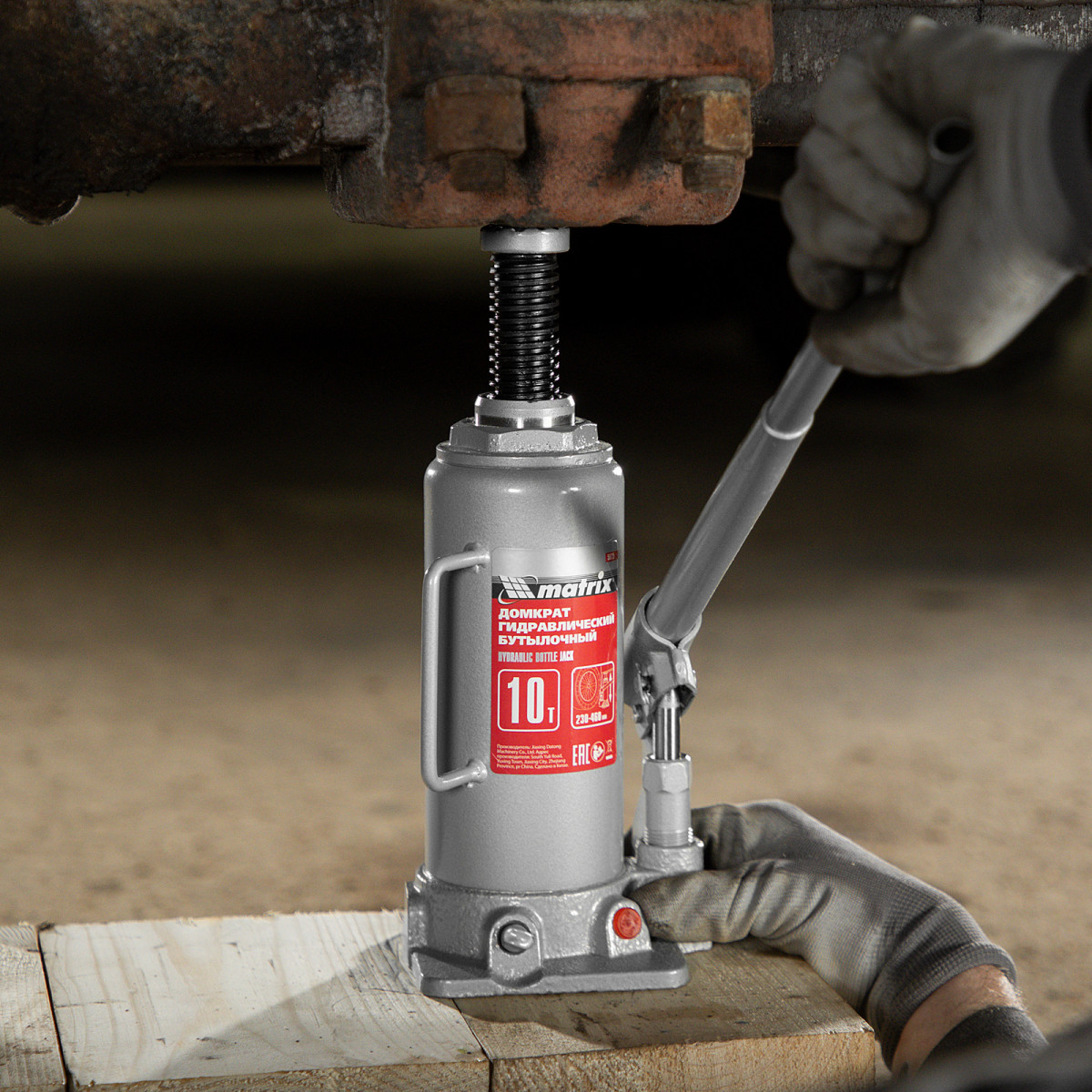 Домкрат гидравлический бутылочный Matrix 50725 используется для поднятия грузов массой до 10 т на высоту 230-460 мм. Подходит для автомобилей с высоким клиренсом. Домкрат будет полезен автолюбителям в гараже и дороге, а также сотрудникам СТО.