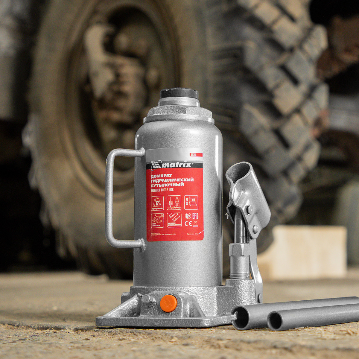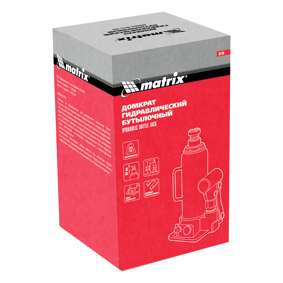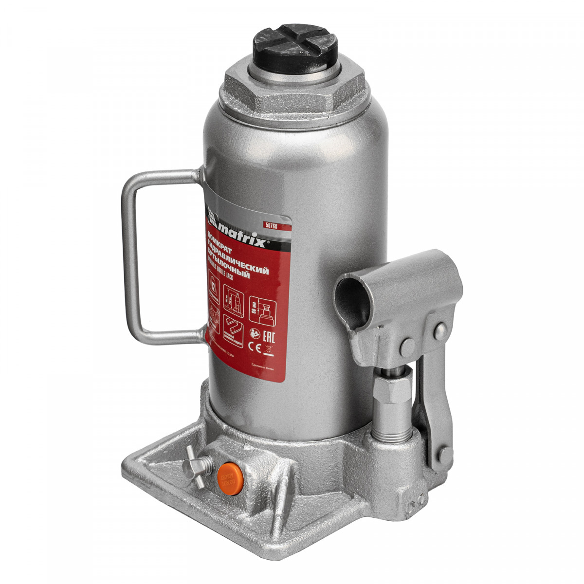 Домкрат гидравлический бутылочный, 12 т, h подъема 230-465 мм Matrix