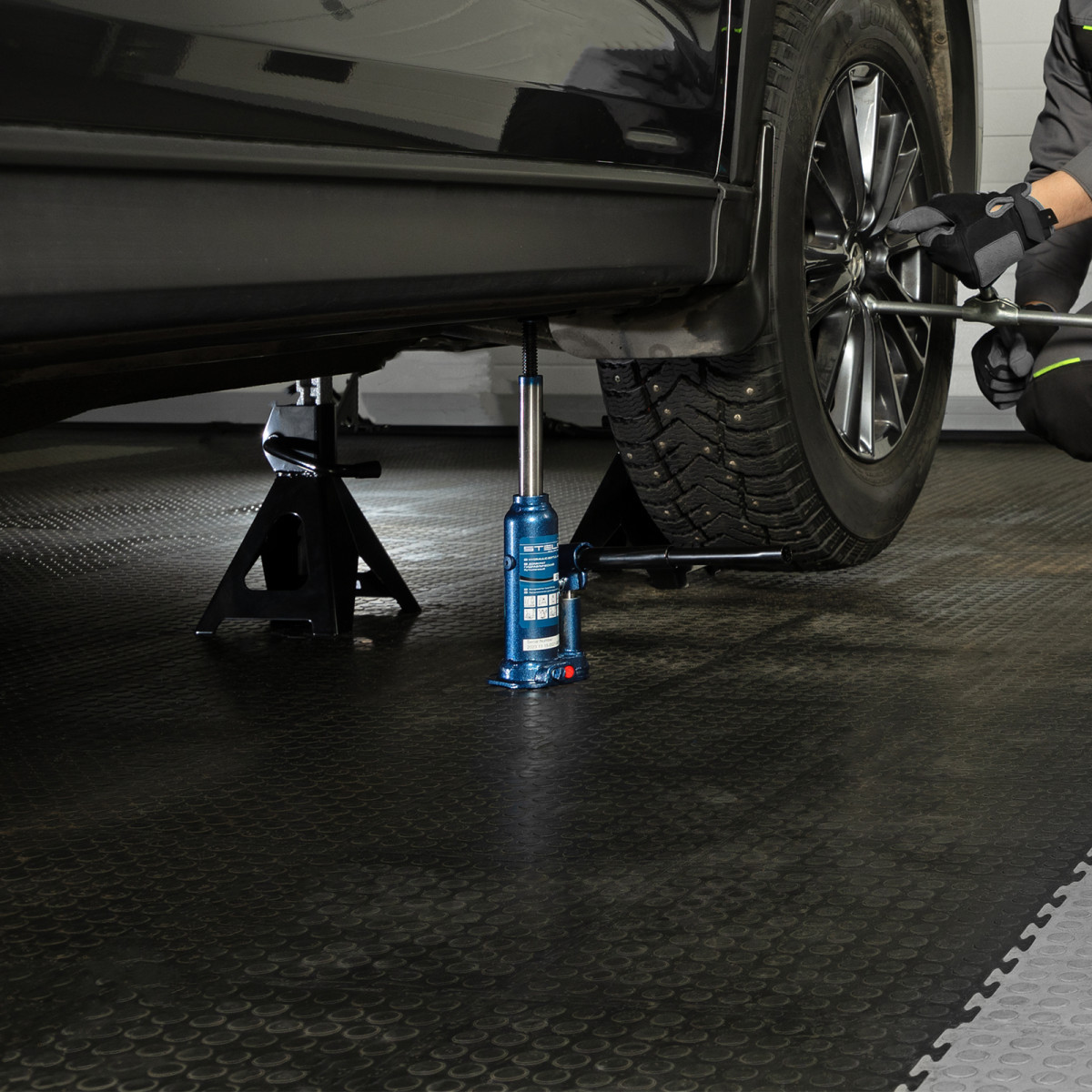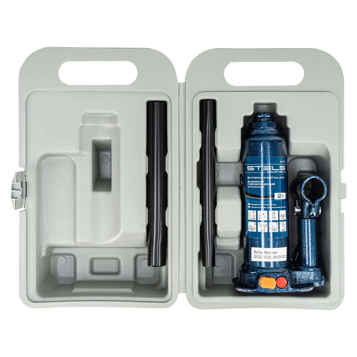 - Удобное хранение и транспортировка — домкрат поставляется в пластиковом кейсе.