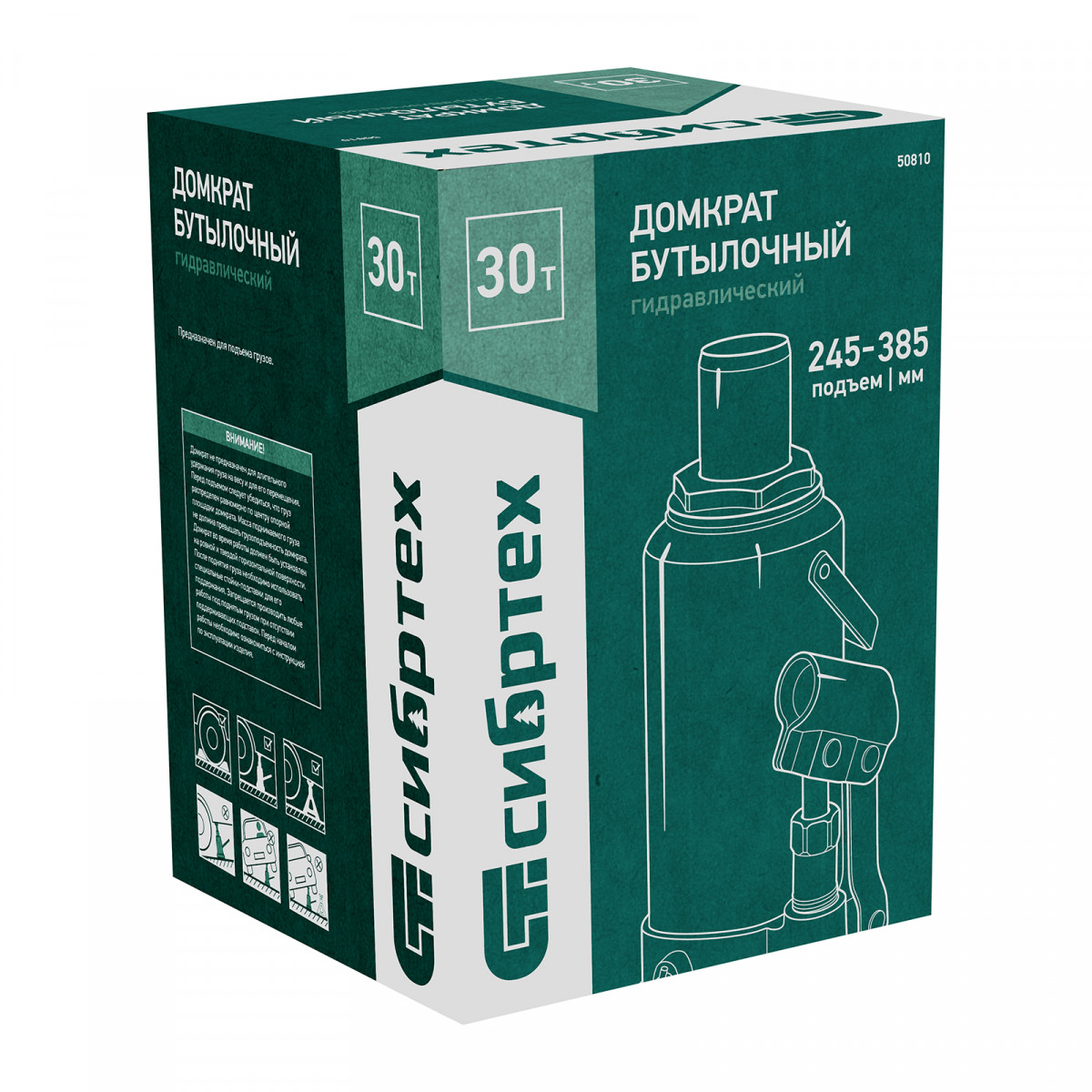 Домкрат гидравлический бутылочный Сибртех 50810 предназначен для подъема грузов массой до 30 т на высоту от 245 до 385 мм. Будет полезен при проведении техобслуживания машины в автосервисе или гараже.