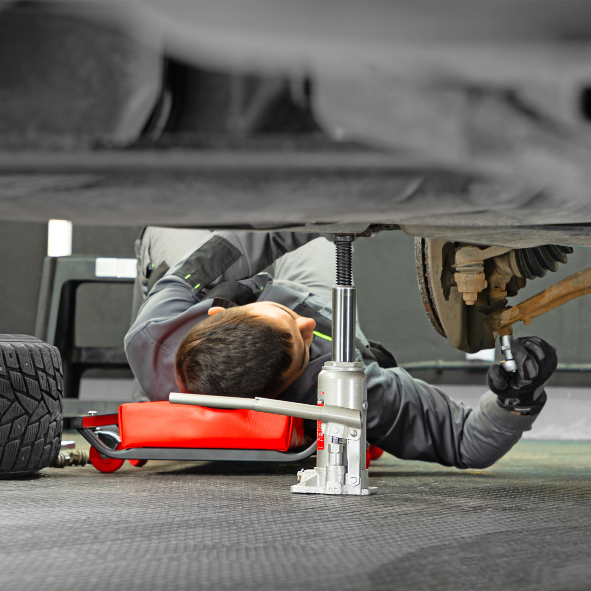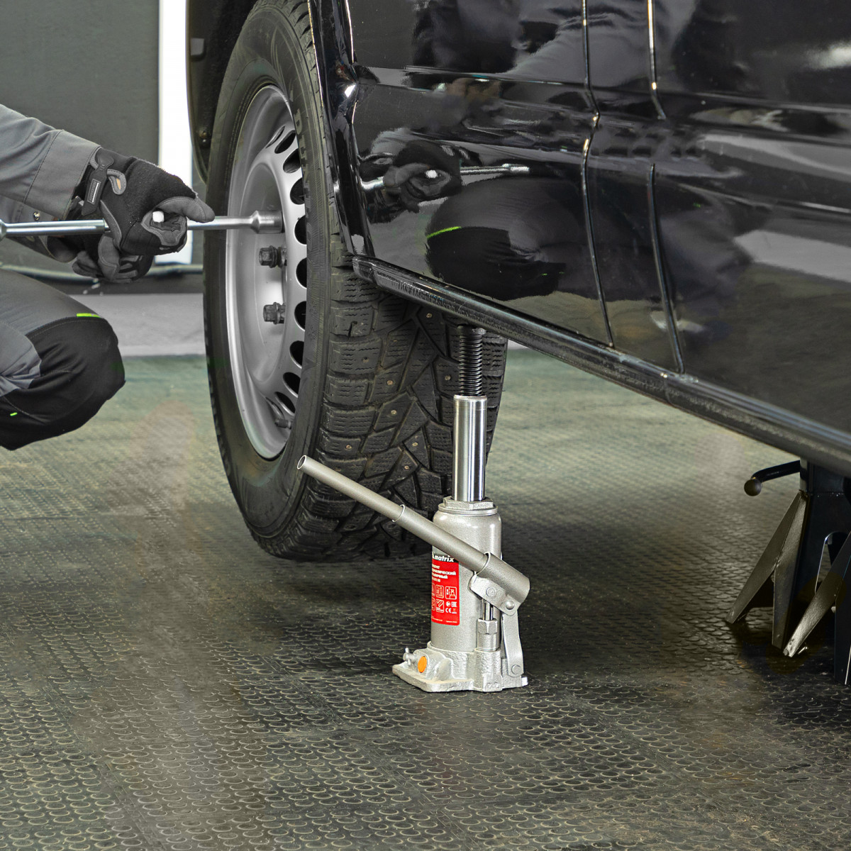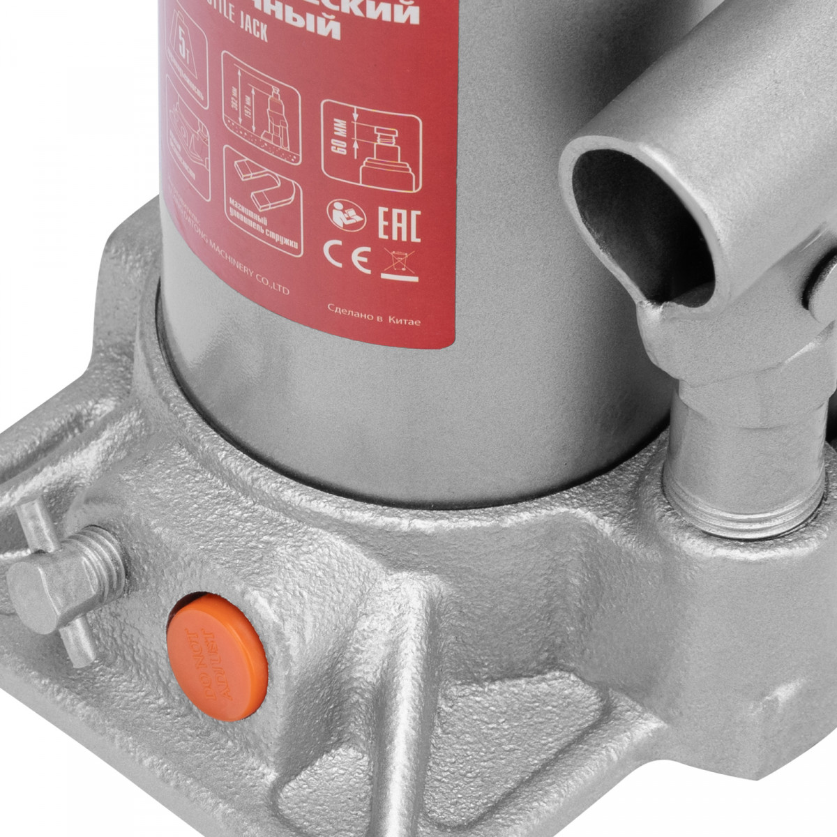 • Безопасность — предохранительный клапан защищает домкрат от перегрузок, не позволяя поднимать автомобиль массой более 5000 кг.
