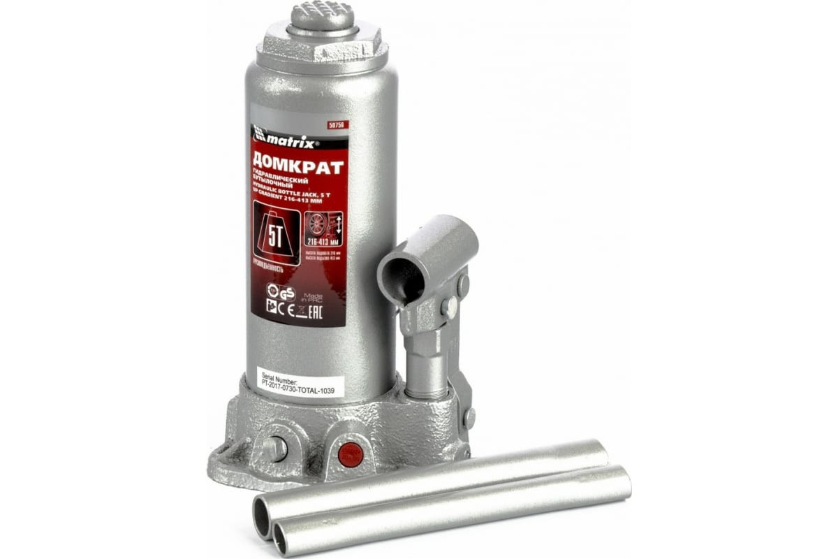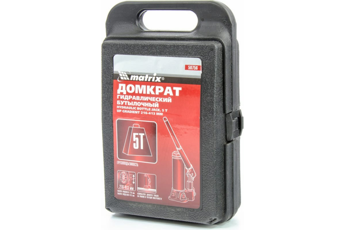 Домкрат гидравлический бутылочный, 5т h 216-413 мм MATRIX