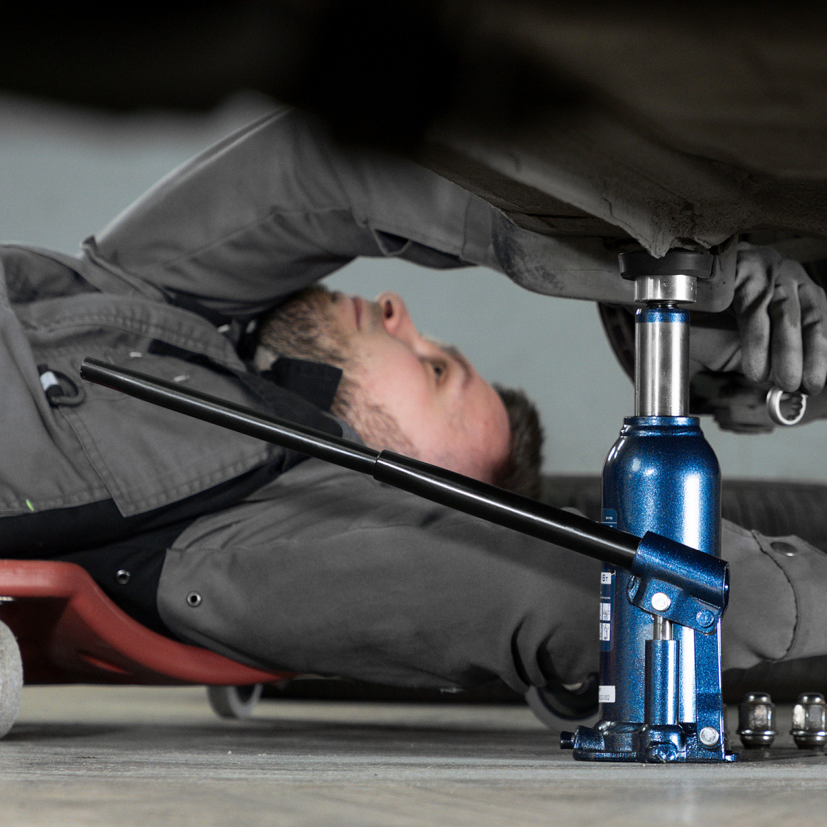 - Удобное хранение и транспортировка — домкрат поставляется в пластиковом кейсе.