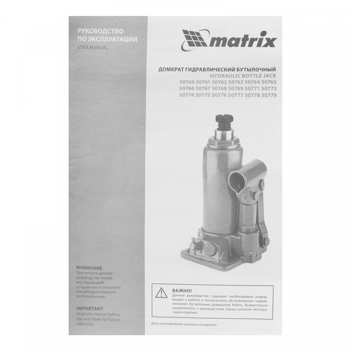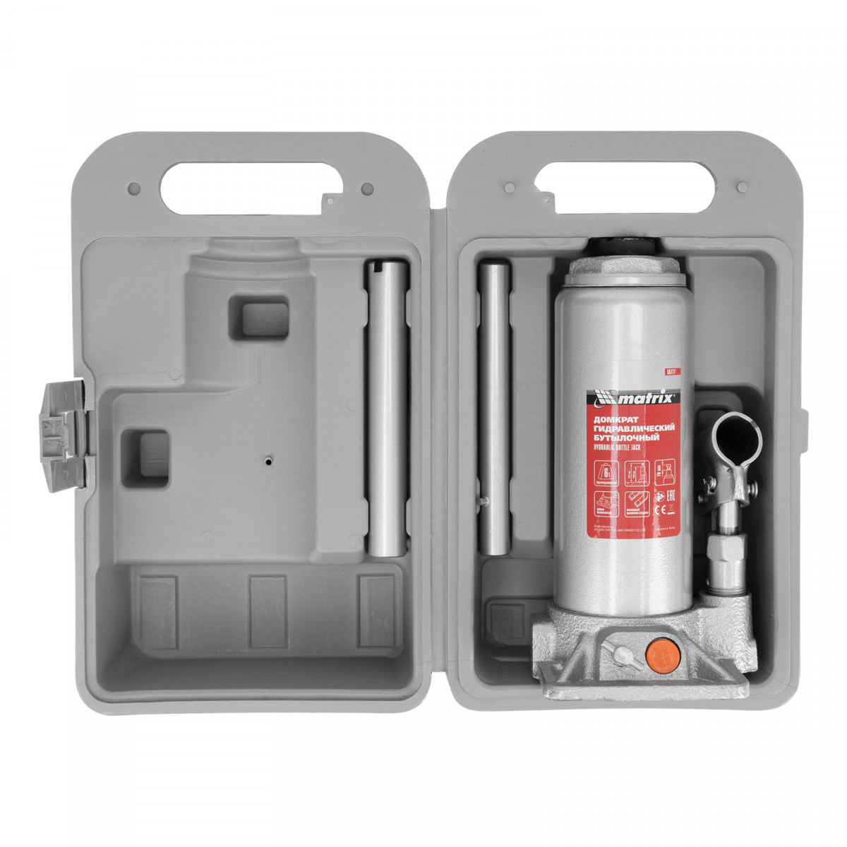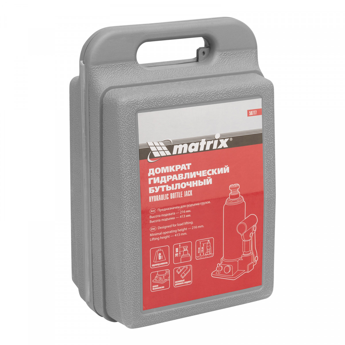 Домкрат гидравлический бутылочный, 6 т, h подъема 216-413 мм, в пластиковом кейсе Matrix