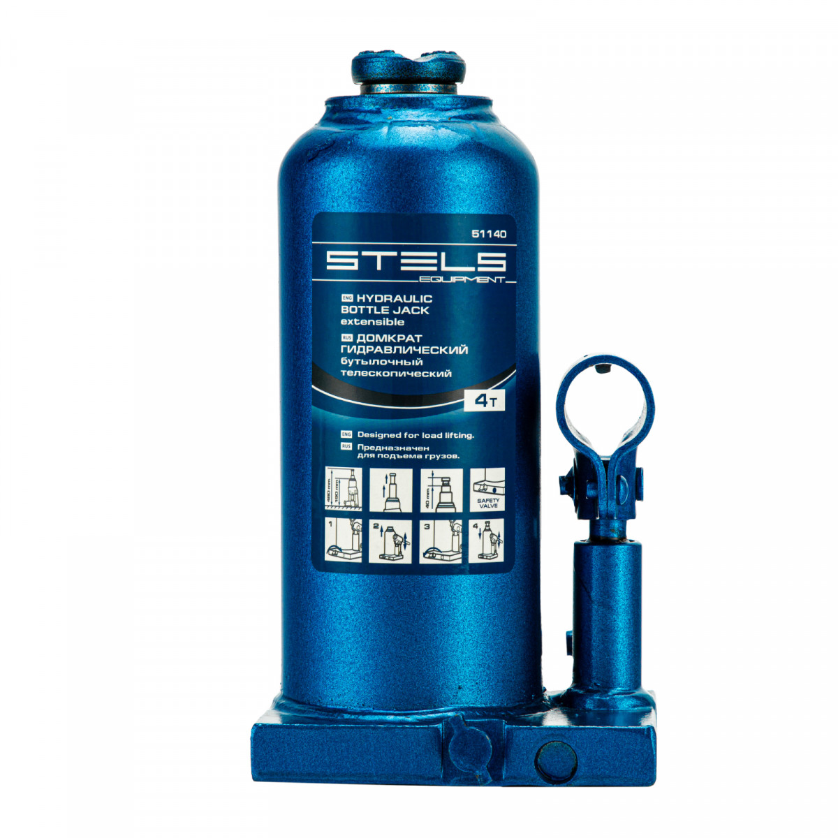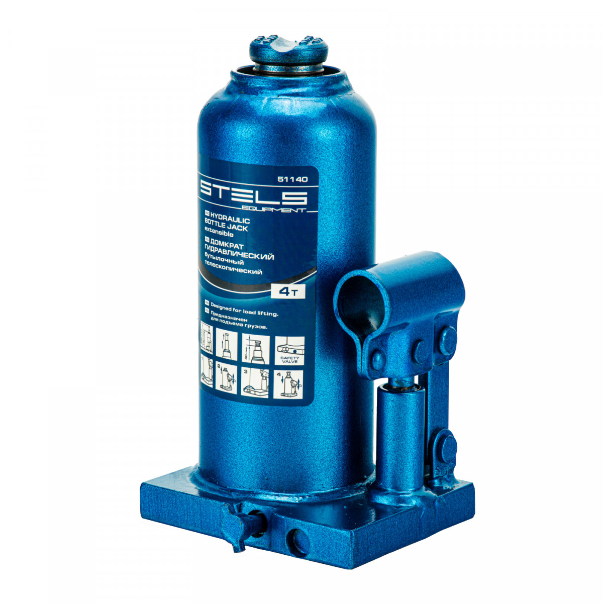 Гидравлический бутылочный телескопический домкрат Stels 51140 используется для поднятия грузов весом до 4 т с на высоту 190-480 мм. Не требует больших усилий и оптимален для автомобилей с большим клиренсом. Домкрат можно использовать в гараже для самостоятельного ремонта машины или в автосервисе для решения профессиональных задач.