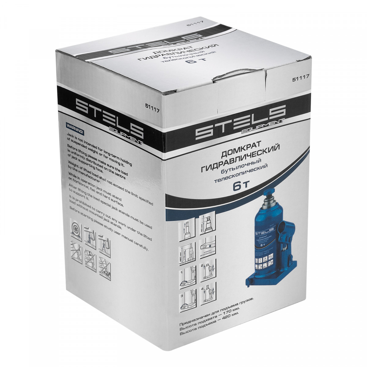 Гидравлический бутылочный телескопический домкрат Stels 51117 используется для поднятия грузов весом до 6 т с на высоту 170-420 мм. Не требует больших усилий и оптимален для автомобилей с большим клиренсом. Домкрат можно использовать в гараже для самостоятельного ремонта машины или в автосервисе для решения профессиональных задач.