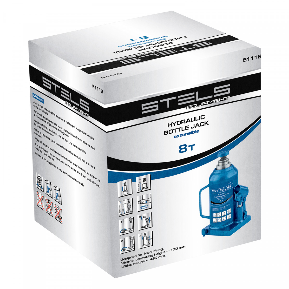 Гидравлический бутылочный телескопический домкрат Stels 51118 используется для поднятия грузов весом до 8 т с на высоту 170-430 мм. Не требует больших усилий и оптимален для автомобилей с большим клиренсом. Домкрат можно использовать в гараже для самостоятельного ремонта машины или в автосервисе для решения профессиональных задач.