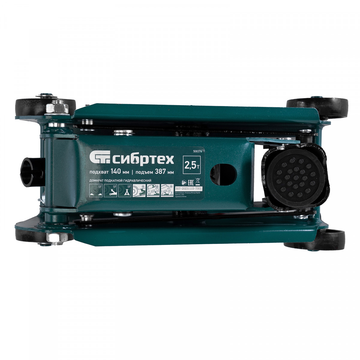 Гидравлический подкатной домкрат Сибртех 50836 с высотой подхвата 140 мм предназначен для подъема грузов массой до 2,5 т на высоту до 387 мм. Применяется для обслуживания автомобилей со стандартным клиренсом. Компактный домкрат подходит для самостоятельного использования автовладельцами.