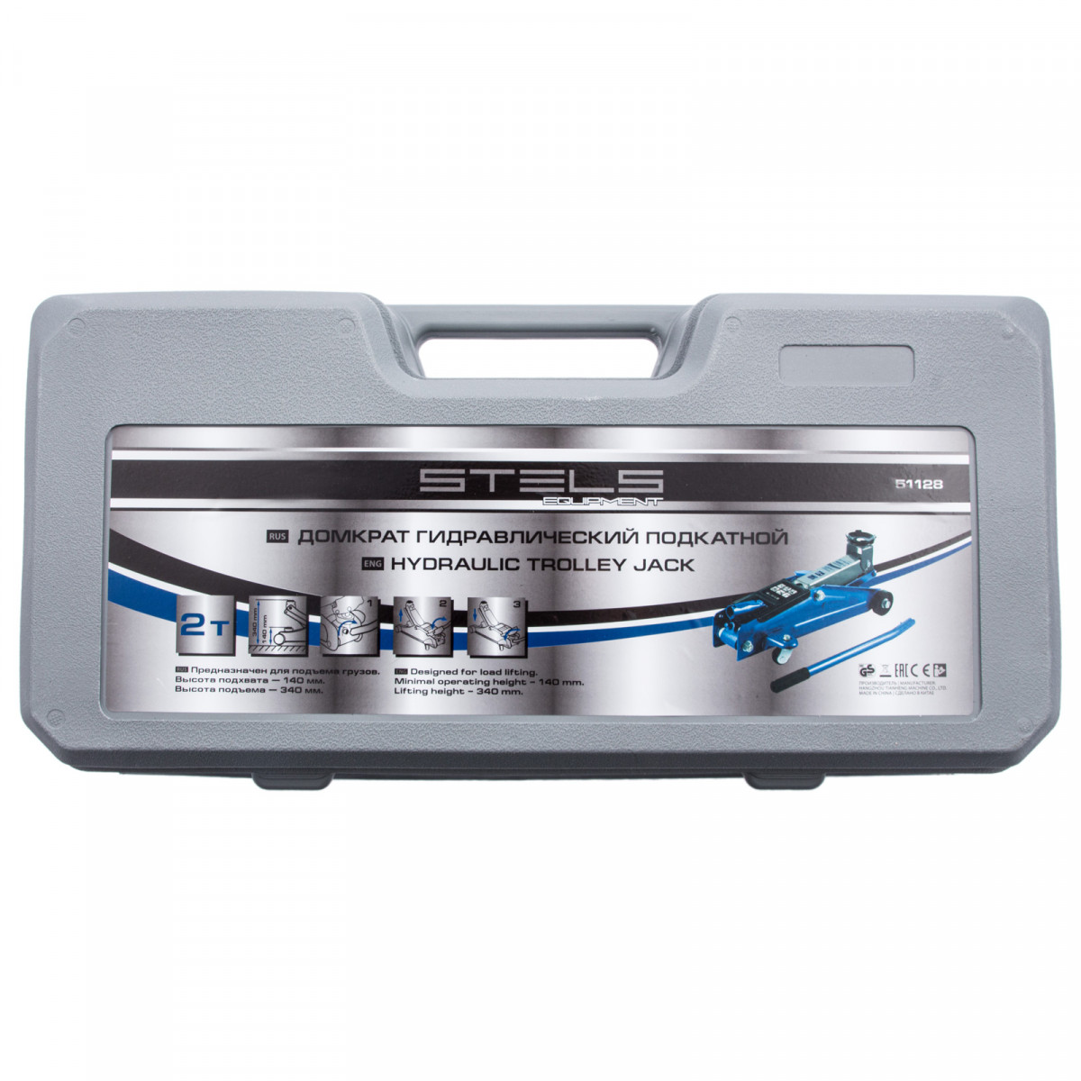 Подкатной гидравлический домкрат Stels 51128, поставляющийся в кейсе, способен поднимать груз массой до 2 т на высоту 140-340 мм. Подходит для легковых автомашин и кроссоверов со стандартным клиренсом. Усиленная конструкция выдерживает повышает надежность домкрата. Домкрат пригодится в частном гараже и на станции техобслуживания.