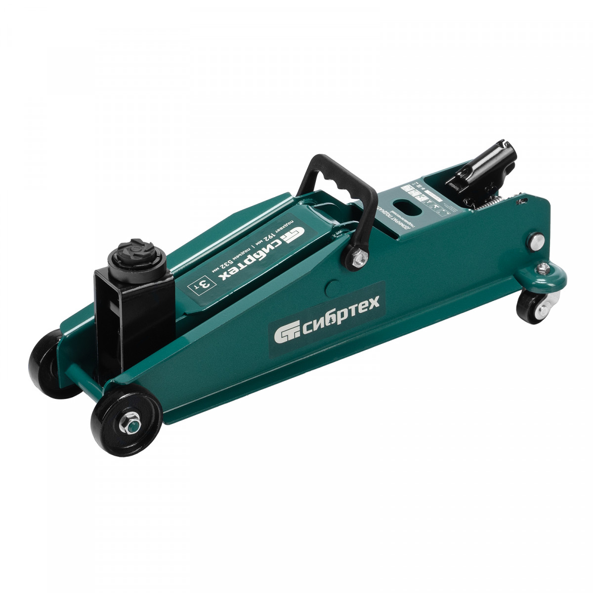 Гидравлический подкатной домкрат Сибртех 50841 с высотой подхвата 192 мм, предназначен для подъема грузов массой до 3 т на высоту до 532 мм, подходит для автомобилей со стандартным клиренсом и SUV. Компактный домкрат подходит для самостоятельного использования автовладельцами.