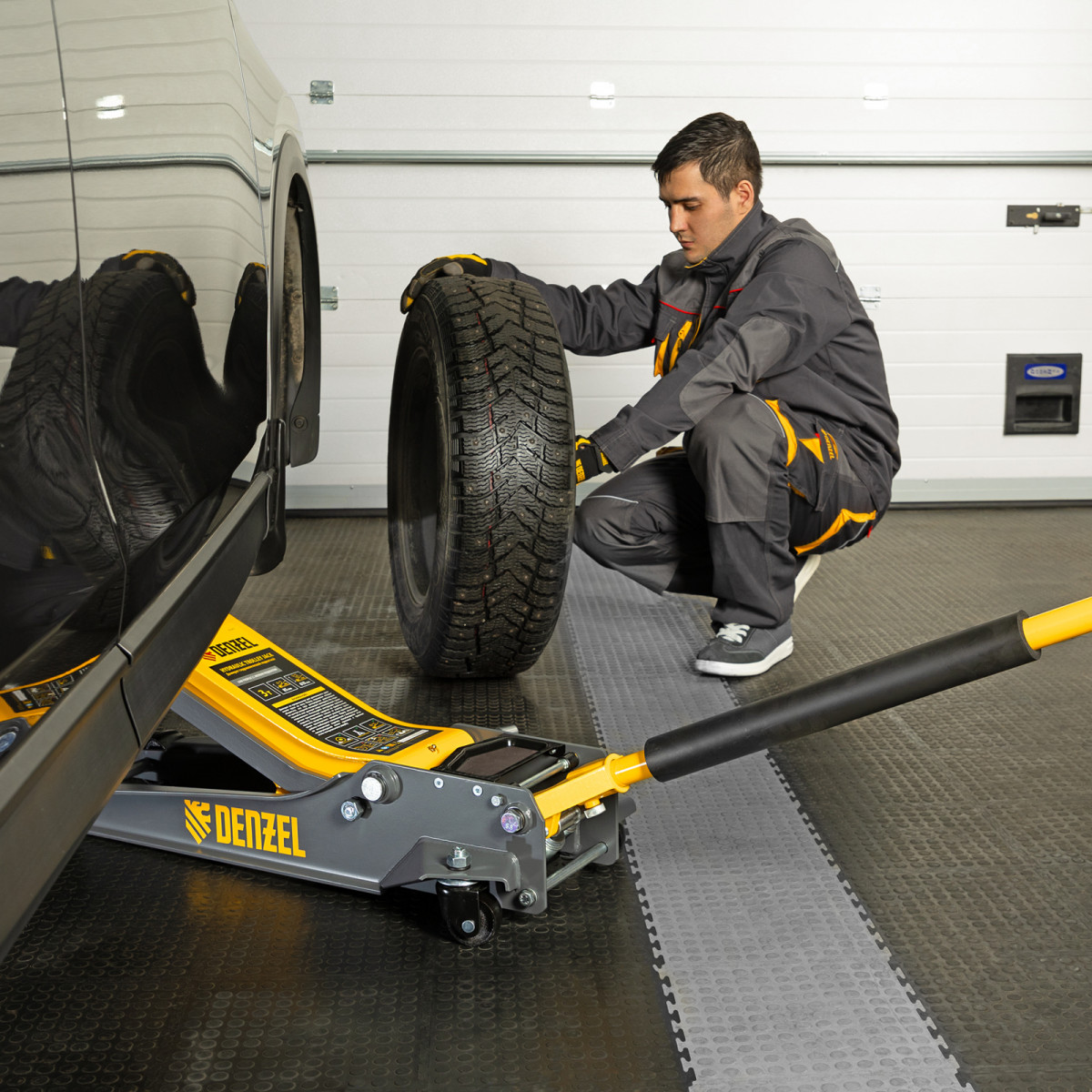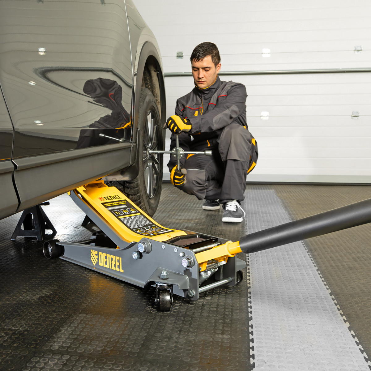 • Аккуратная работа — резиновая опора и прорезиненная рукоятка защищают кузов и днище автомобиля от нежелательных повреждений.