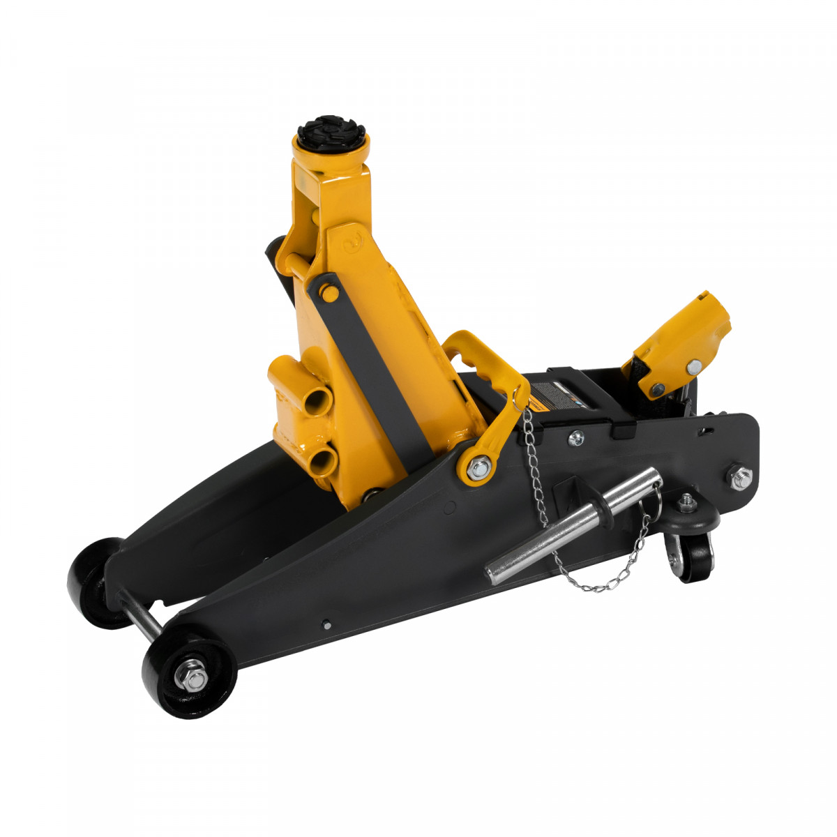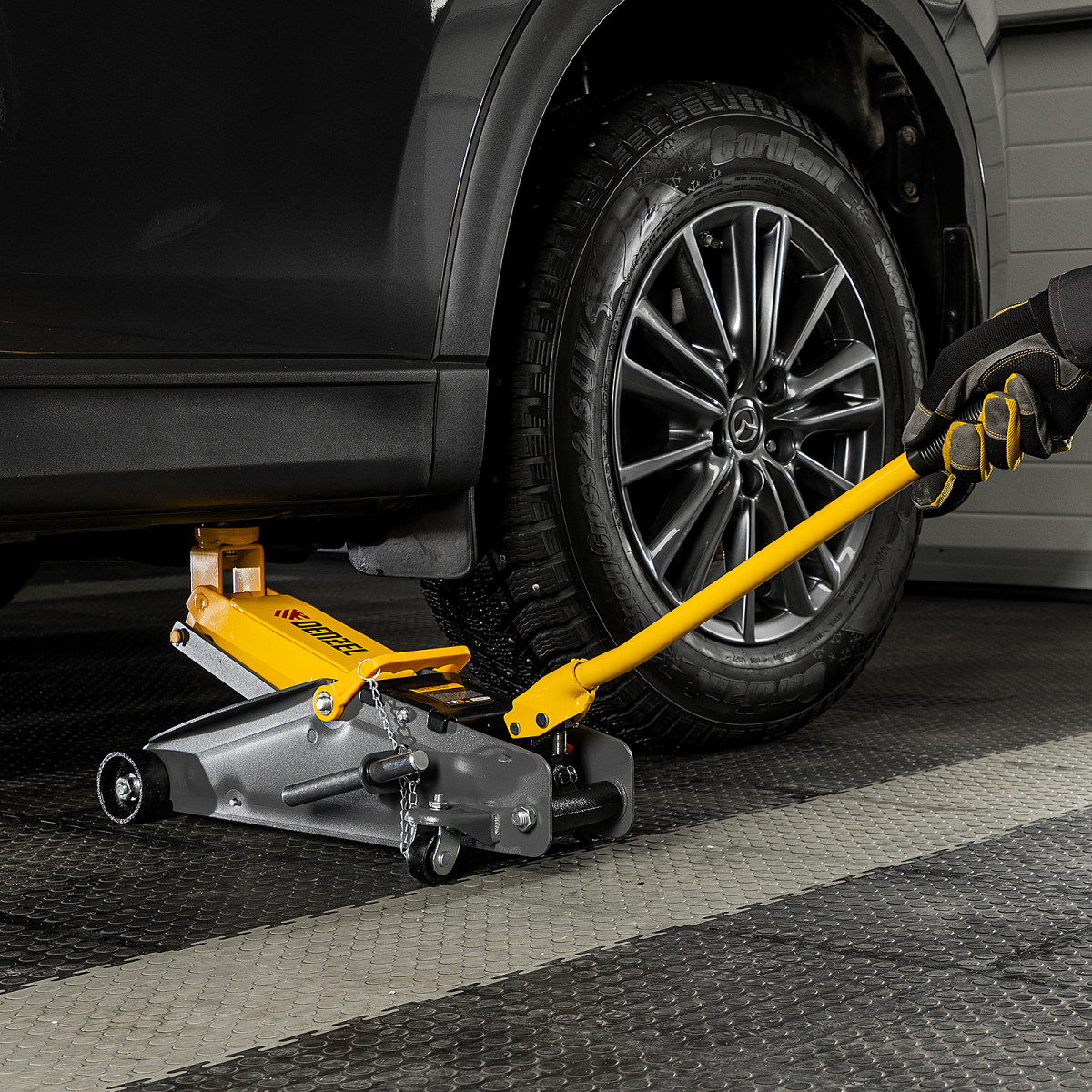 Гидравлический подкатной домкрат с фиксатором Denzel 51156, с высотой подхвата 135 мм, предназначен для плавного подъема грузов массой до 2,8 т на высоту до 385 мм. Страховочный штифт позволяет фиксировать подъемный рычаг на высоте 305 и 370 мм для безопасной работы. Домкрат пригодится владельцам легковых автомобилей со стандартным клиренсом.