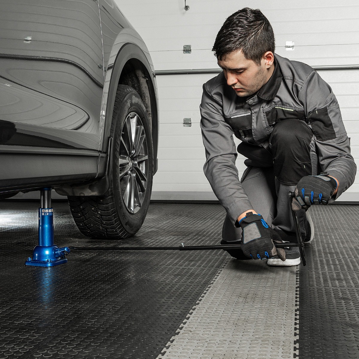 - Удобная транспортировка — компактный домкрат весом 3,93 кг легко помещается в багажник автомобиля.