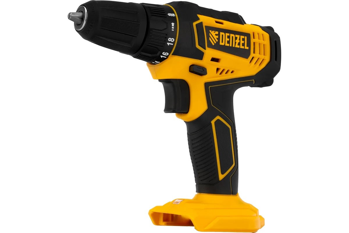 Аккумуляторная дрель-шуруповерт Denzel CDL-18-0 26117 с рабочим напряжением 18 В предназначена для ввинчивания и вывинчивания винтов и шурупов, а также получения отверстий в различных конструкционных материалах: металле, древесине, пластмассе и т. п.