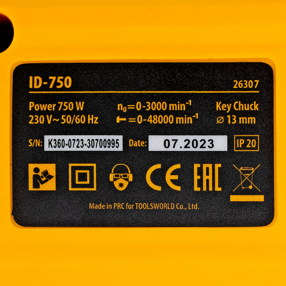 Дрель ударная ID-750, 750 Вт, 0-3000 об/мин, 48000 уд/мин Denzel