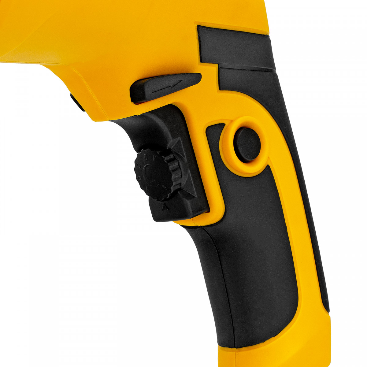 - Комфортная работа — основная и боковая рукоятки не выскальзывают из рук, дрель весит 1,95 кг, что позволяет долго работать без ощущения усталости.
