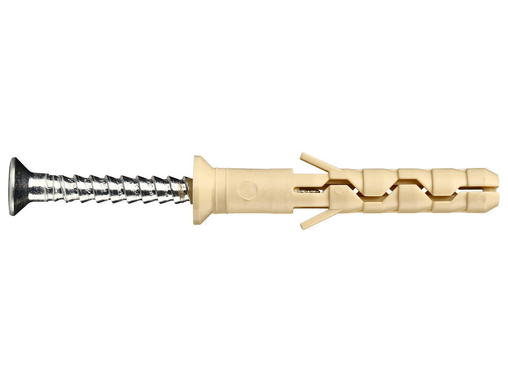 Дюбель-гвоздь позволяет осуществить быстрый, сквозной монтаж. Просто просверлите отверстие через прикрепляемый материал, забейте гвоздь и крепление готово. Шлиц на шляпке позволяет демонтировать гвоздь. Диаметр сверла-8 мм, максимальная толщина прикрепляемого материала-10 мм Применение: бетон, кирпич, натуральный камень - Нагрузка: Бетон - 50 кг