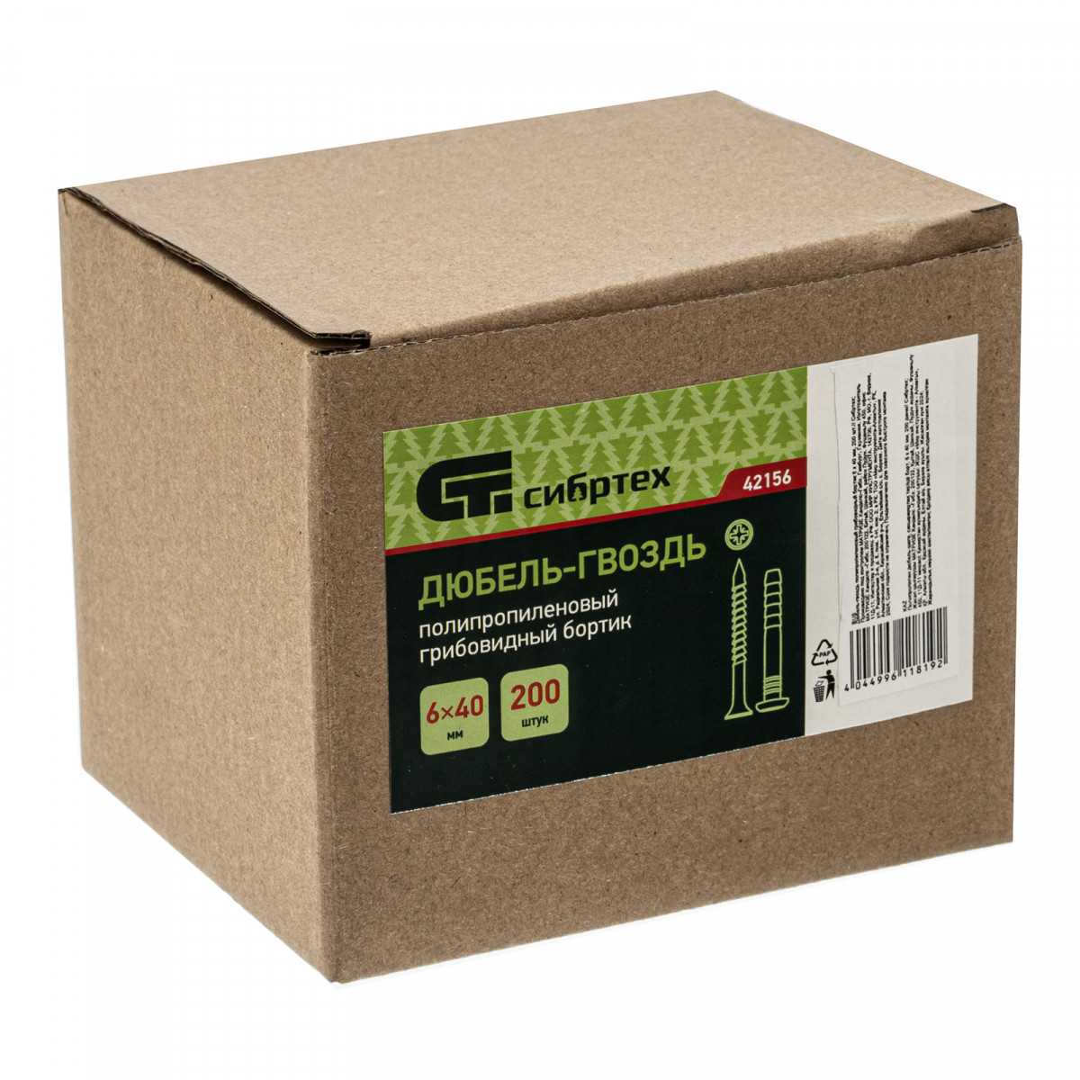 Дюбель-гвоздь полипропиленовый грибовидный бортик 6 x 40 мм, 200 шт Сибртех