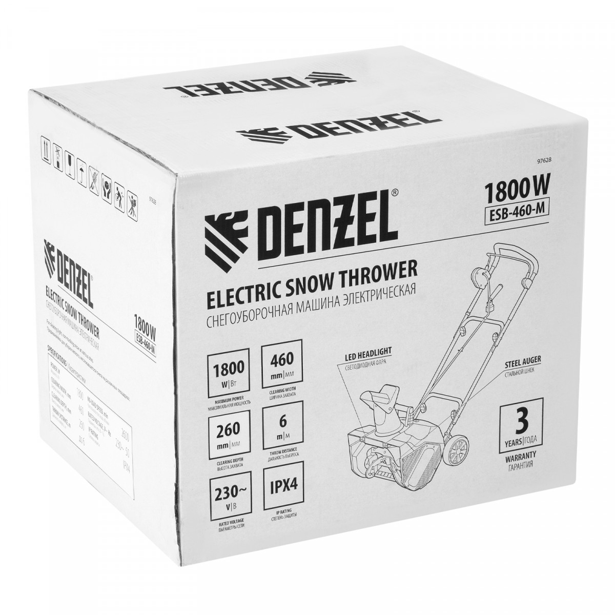 Электрическая снегоуборочная машина ESB-460-M, 1.8 кВт, металлический шнек, LED фара Denzel