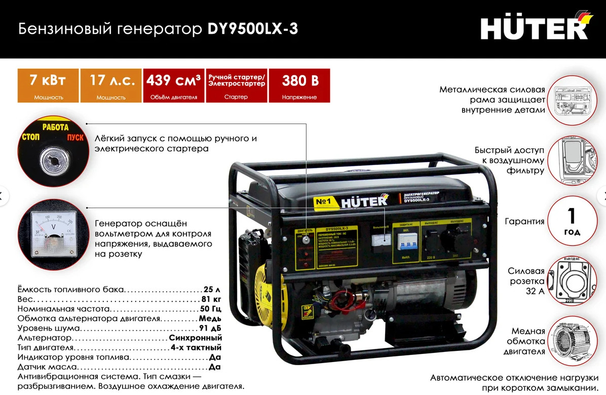 Преимущества Huter DY9500LX-3 4/1/41