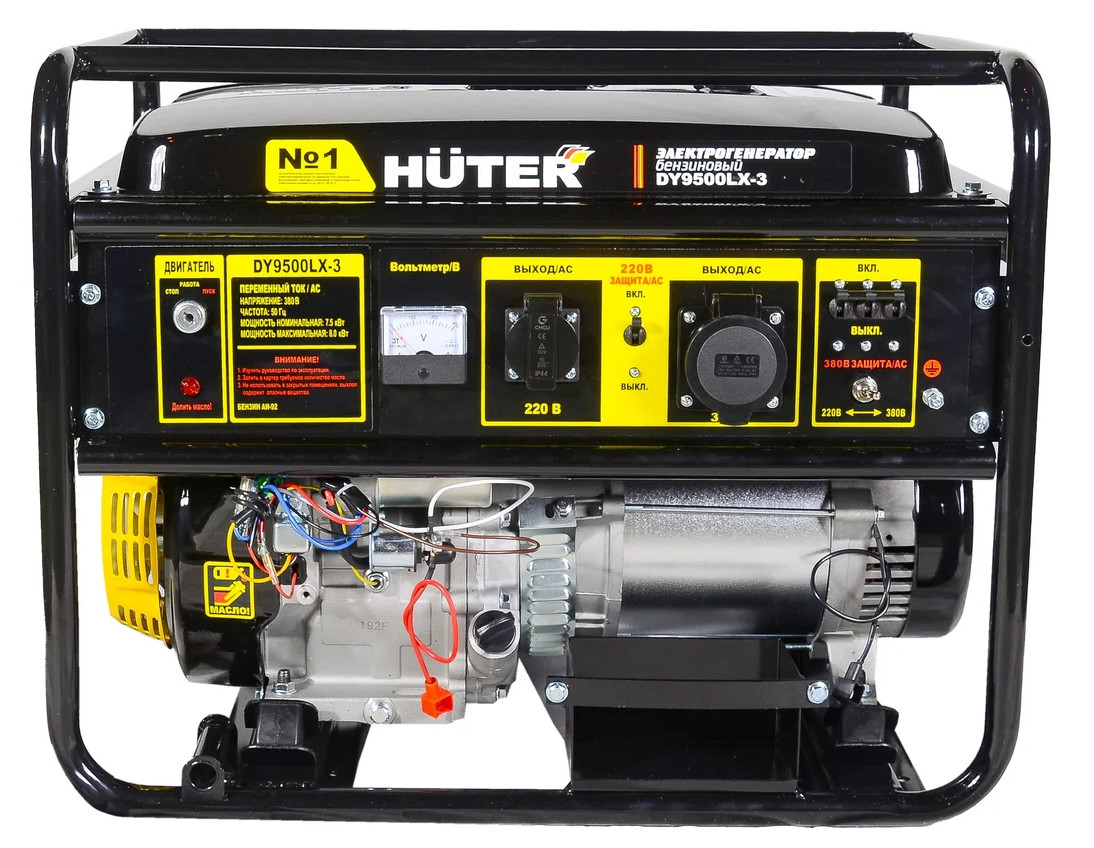 Электрогенератор бензинового типа HUTER DY9500LX-3 мощностью 7500/8000 Вт применяется для выработки электроэнергии для приборов при ее отсутствии или временных перебоях. Четырехтактный одноцилиндровый двигатель мощностью 17 л.с. имеет повышенный рабочий ресурс и обеспечивает стабильное напряжение. Запуск осуществляется с помощью ручного и электрического стартеров.