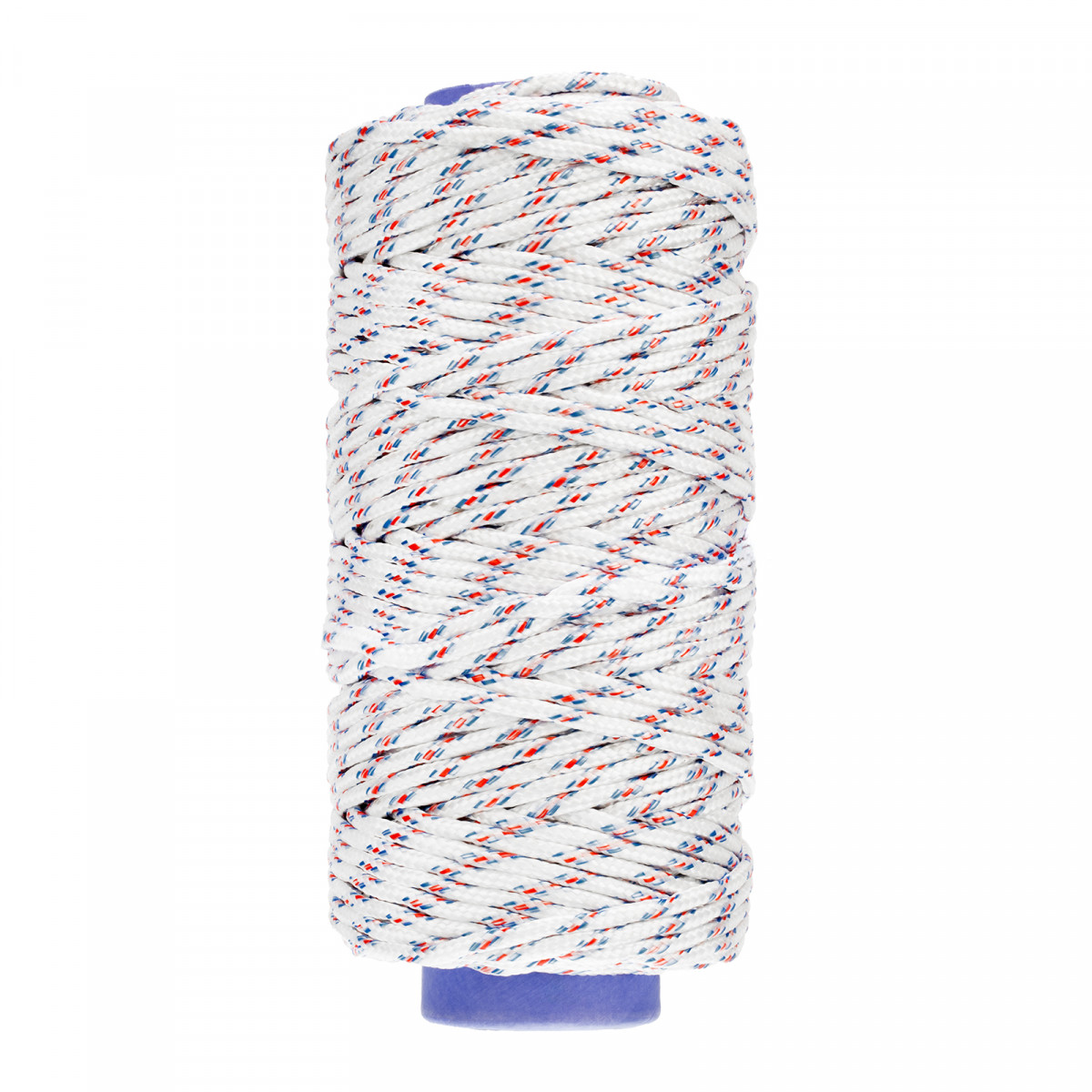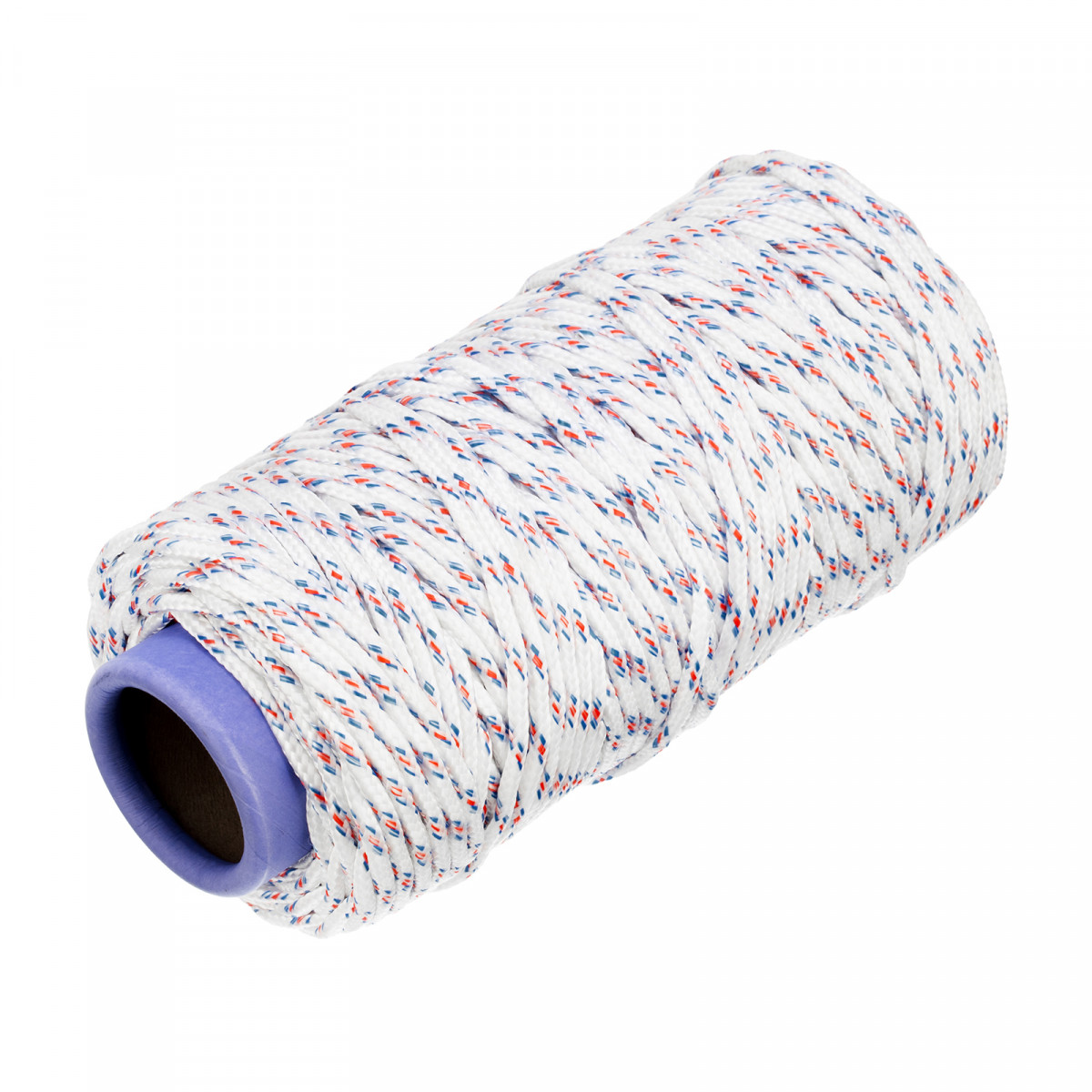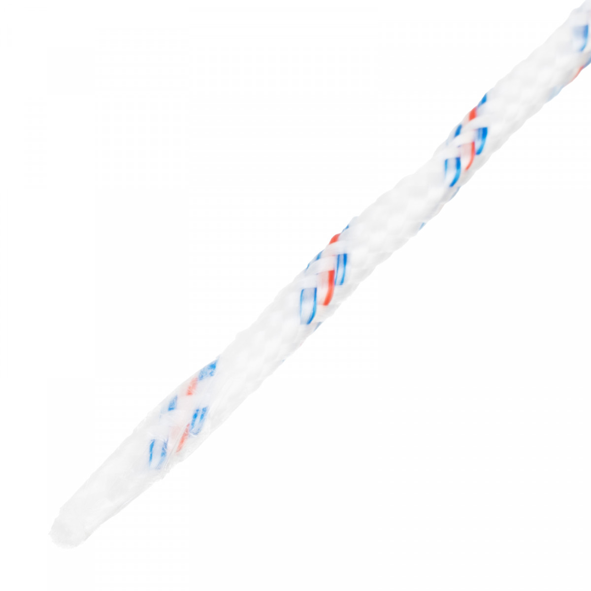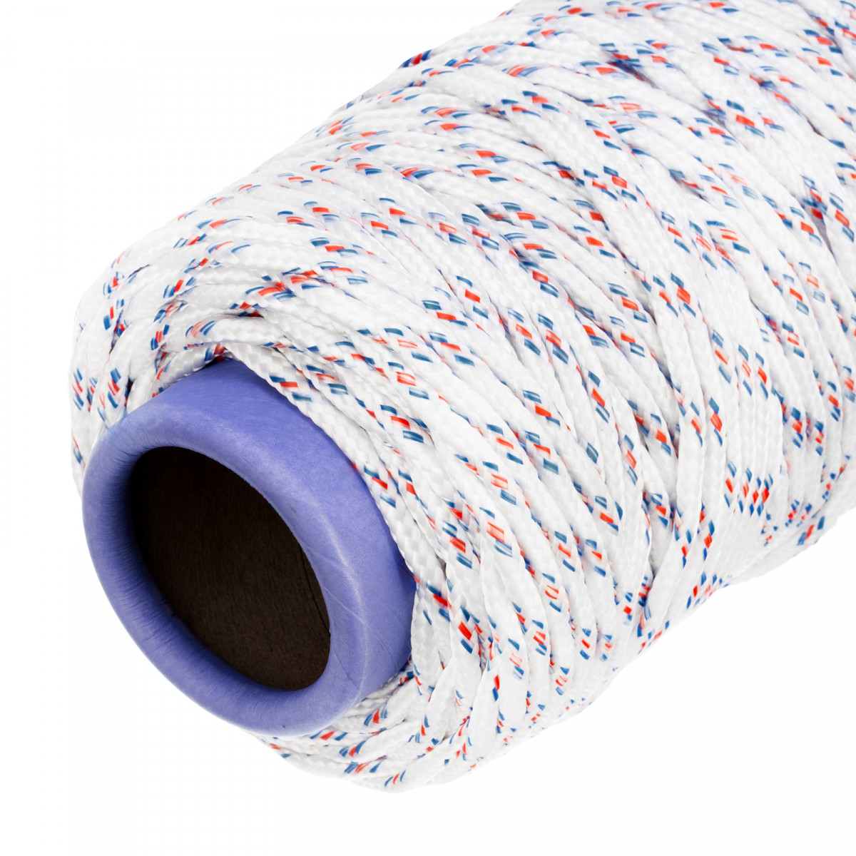 Долговечный фал из полипропилена выдерживает нагрузку до 320 кгс благодаря 16-прядной оплетке.