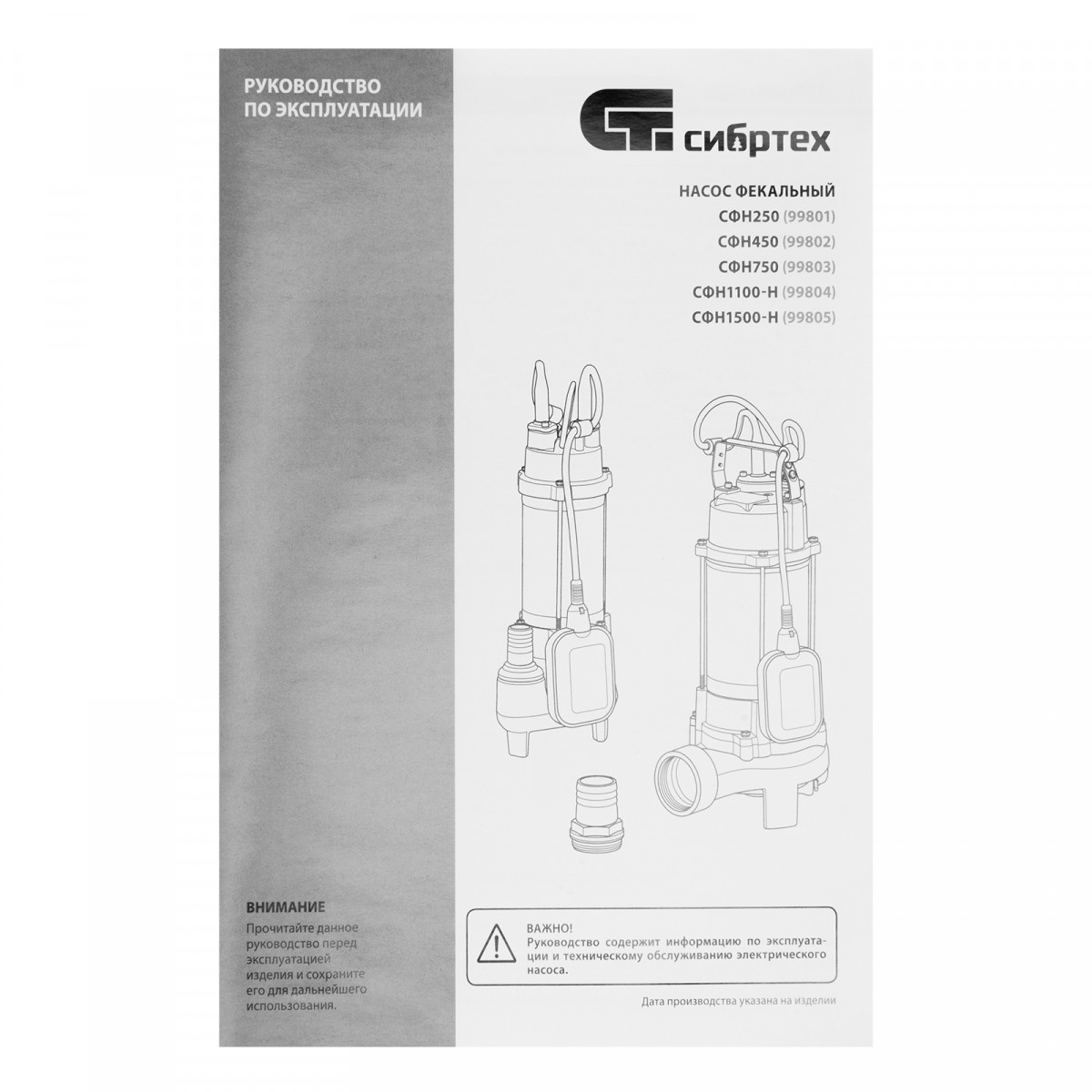 Фекальный насос СФН450, 450 Вт, напор 15 м, 21000 л/ч Сибртех