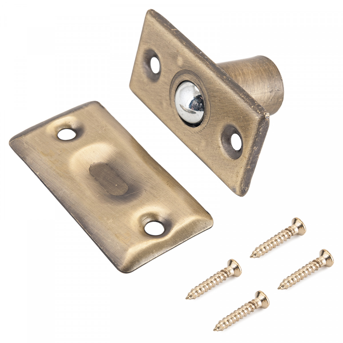 Фиксатор дверной с шариком. Предназначен для запирания межкомнатных дверей (алюминиевых, деревянных, из МДФ и ПВХ). Защелка не запирает, а защелкивает полотно, тем самым удерживая его в дверном проеме. Материал - ЦАМ, гальваническое покрытие. Габариты торцевой планки - 47х20 мм. В комплекте шурупы и ответная планка.