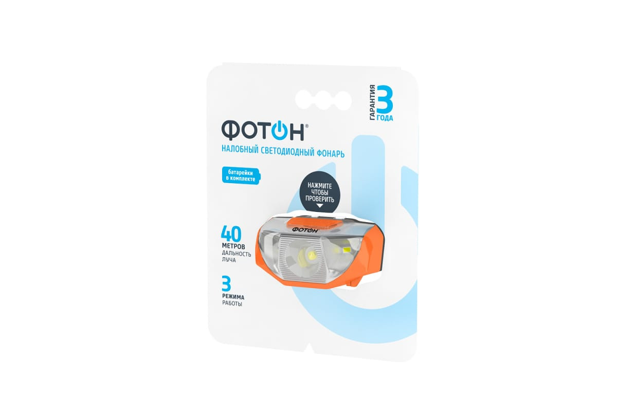 Фонарь налобный светодиодный ФОТОН 23062 SH-400 1xLR6 в комплектеШироко применяется электриками, спортсменами, туристами - то есть тогда, когда нужен яркий свет и обе руки должны быть свободны.Технические характеристики:– Материал корпуса: ABS-пластик;