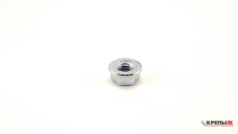 Гайка шестигранная с фланцем. Фланец гайки рельефный. Используется для монтажа, соединения, крепления элементов конструкций и оборудования совместно с болтами, шпильками с соответствующим размером метрической резьбы.
