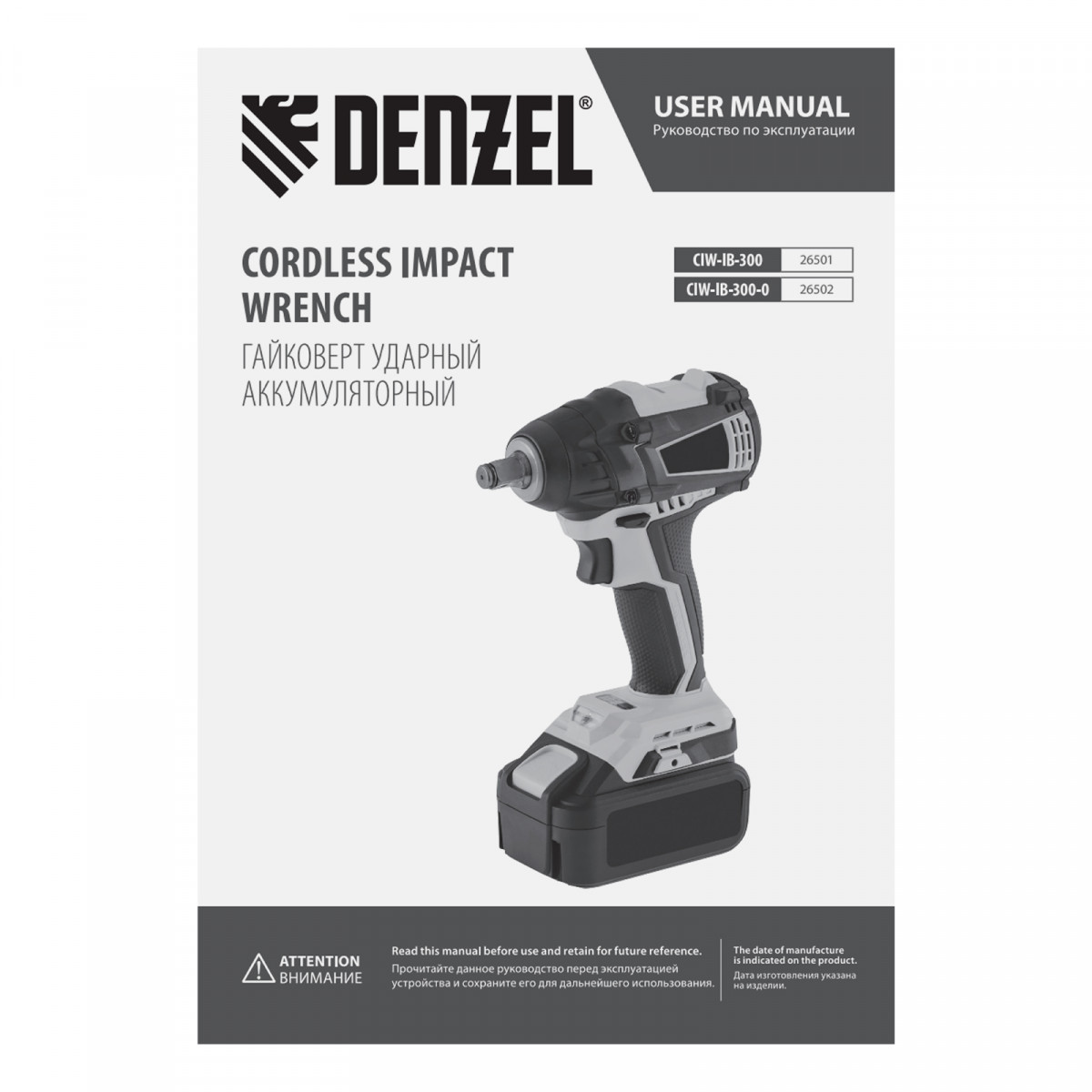 Гайковерт ударный аккумуляторный бесщет CIW-IB-300-0, Li-ion, 18В, 300Нм Denzel