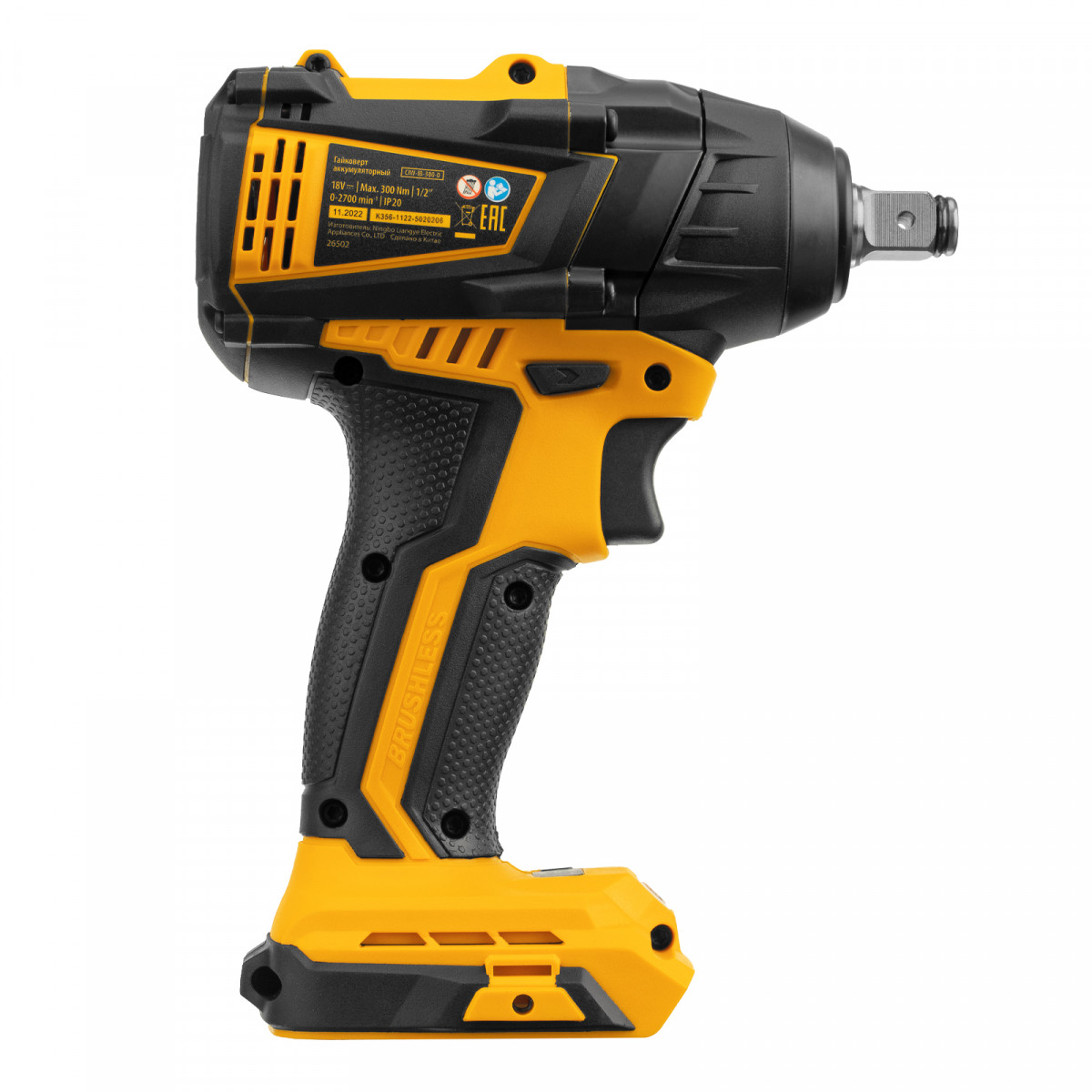 - Высокая производительность и надежность — экономичный бесщеточный двигатель не требует обслуживания, а высокий крутящий момент 300 Нм позволяет справиться даже с закисшим крепежом.