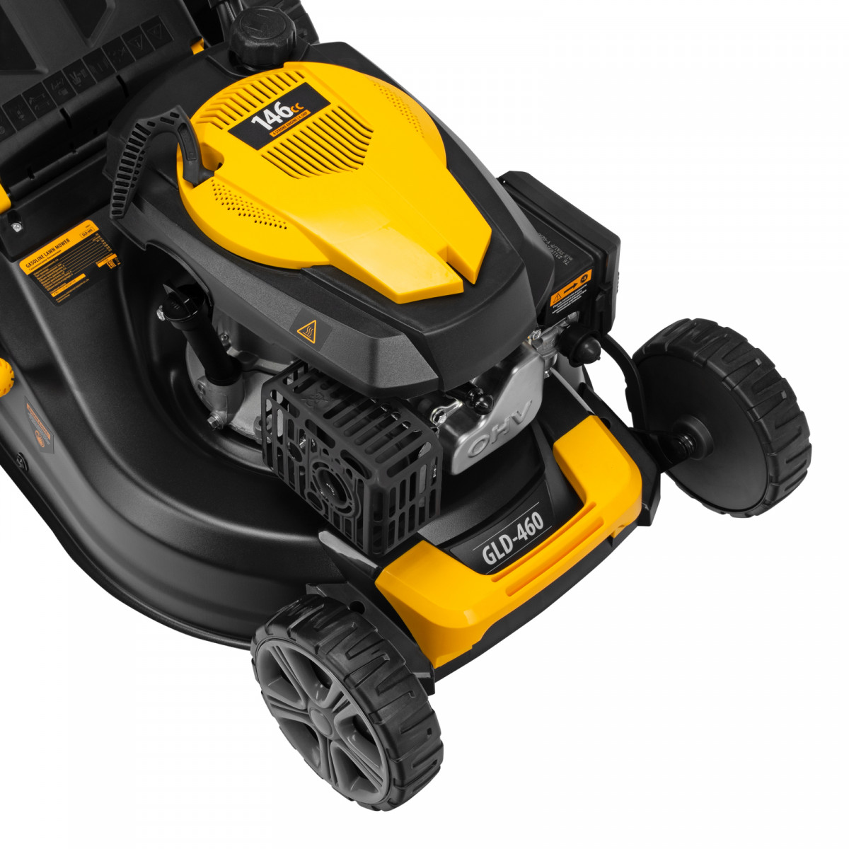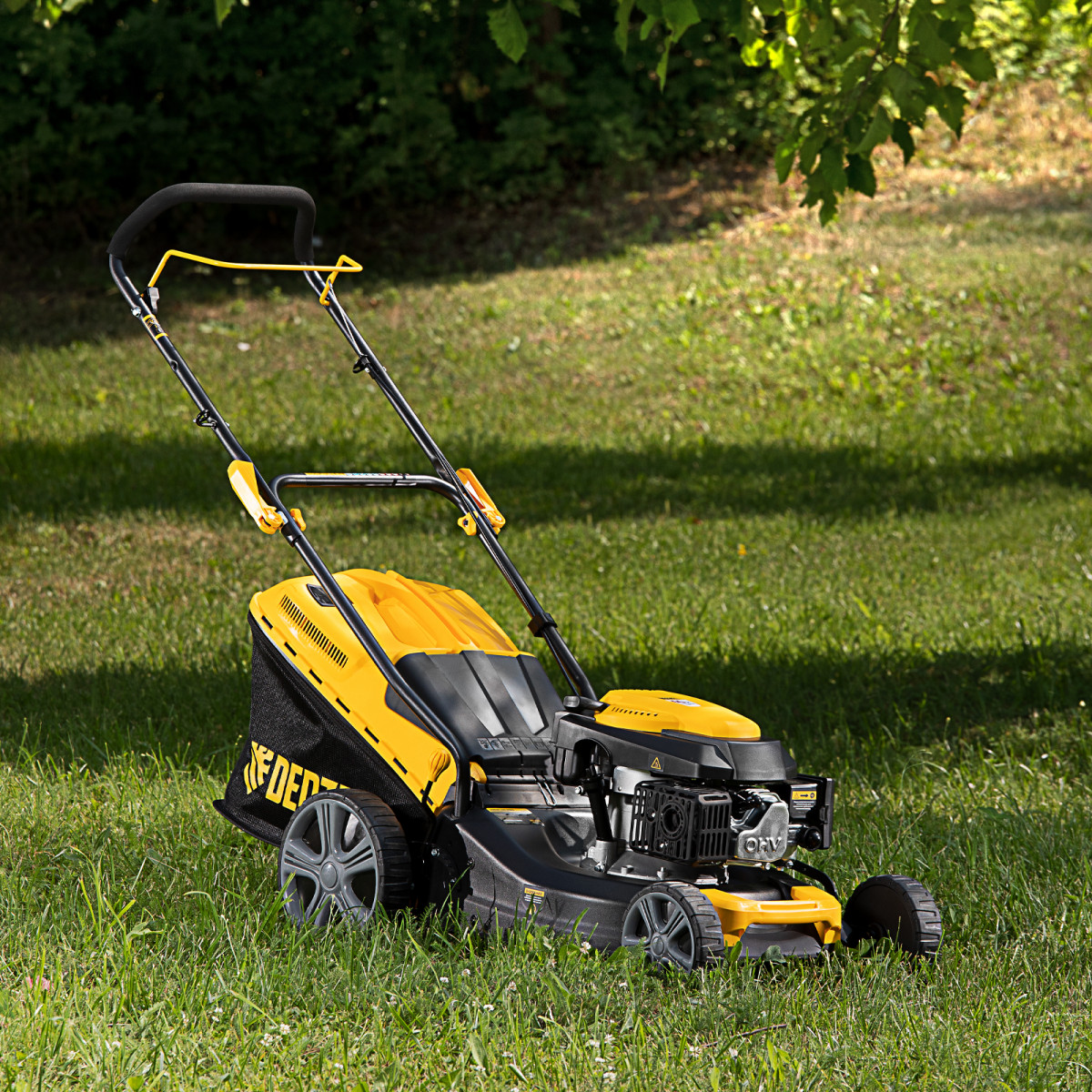 • Качественные комплектующие — хромированный цилиндр, закаленный коленвал, облегченный поршень и свеча зажигания BOSCH/NGK значительно повышают надежность газонокосилки.