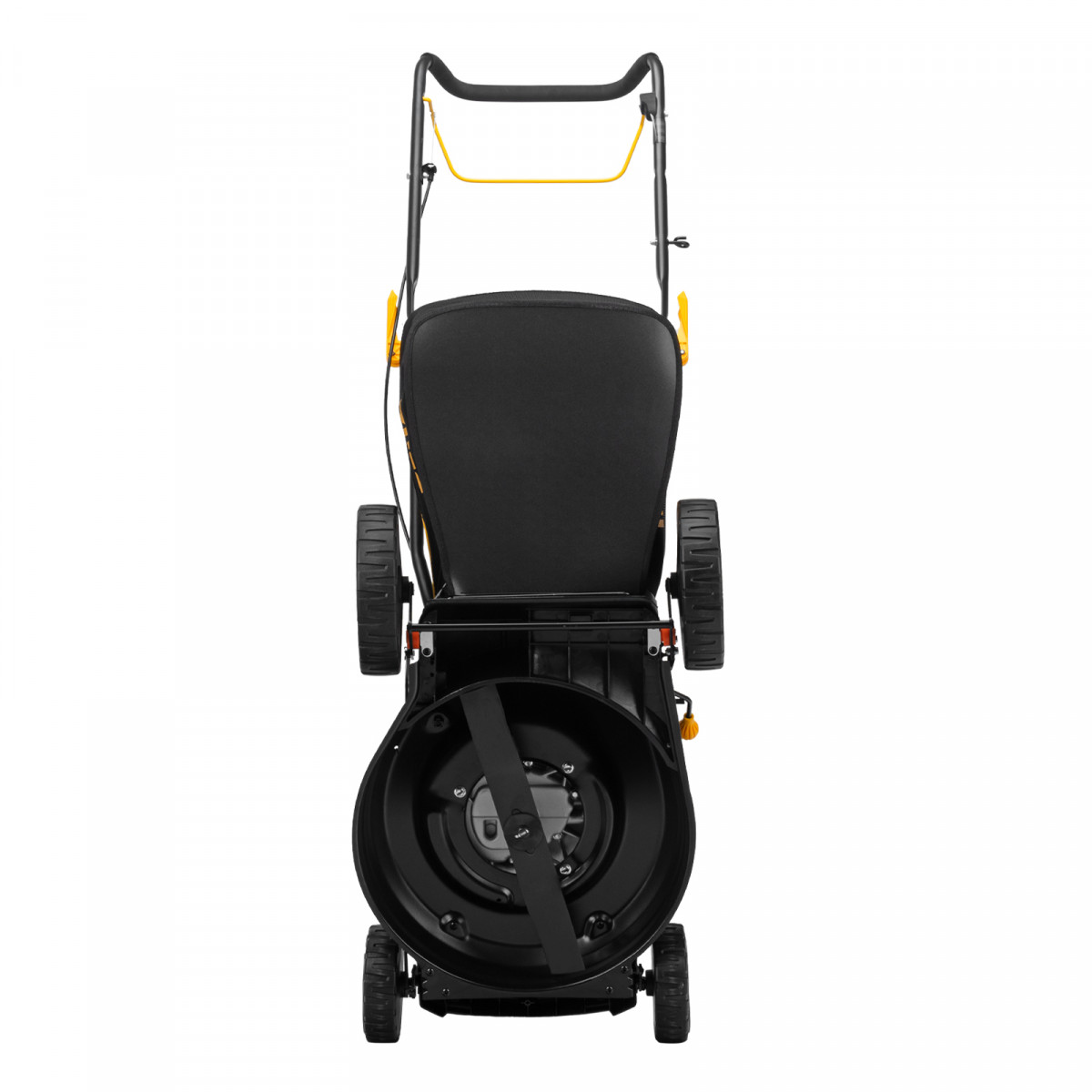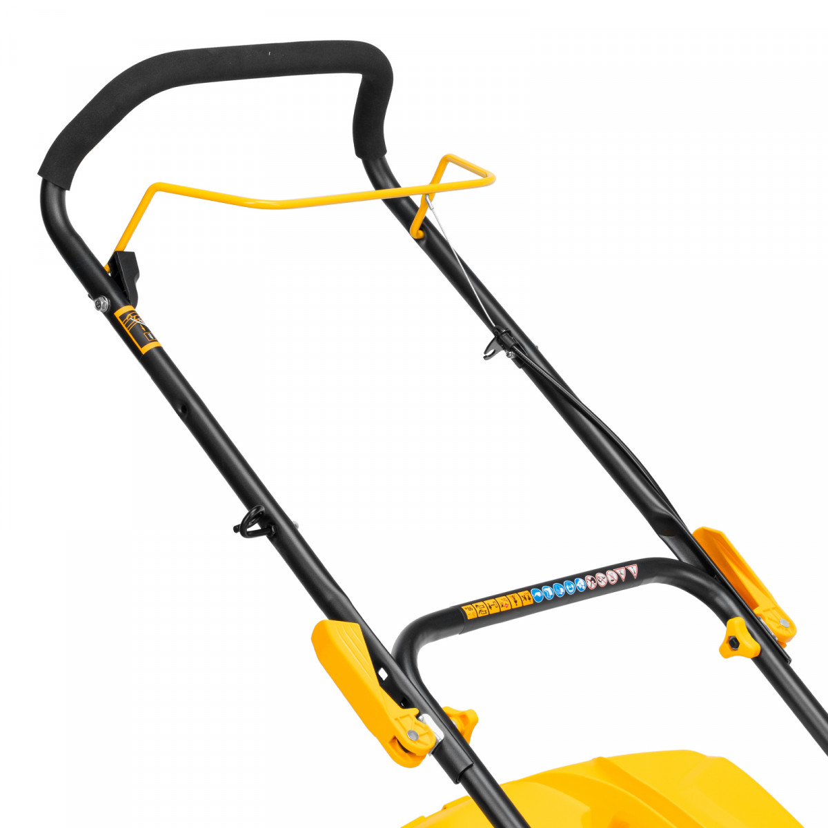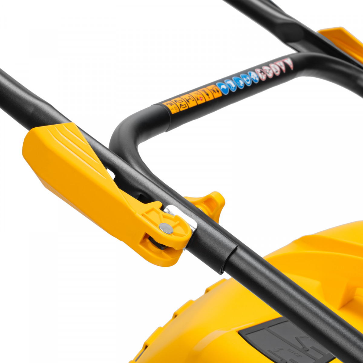 • Быстрая настройка — эксцентриковые фиксаторы ручки позволяют оперативно перевести газонокосилку в рабочее или транспортировочное положение, а 3 точки крепления обеспечивают регулировку вылета ручки под рост пользователя.