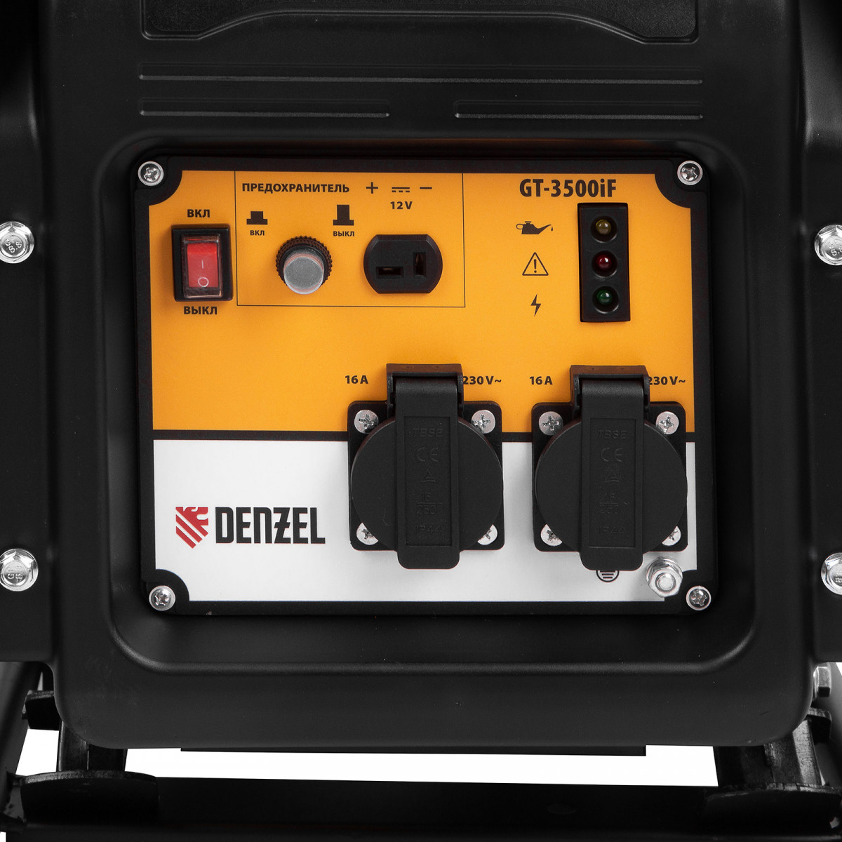 Генератор инверторный GT-3500iF, 3.5 кВт, 230 В, бак 5 л, открытый корпус, ручной старт Denzel