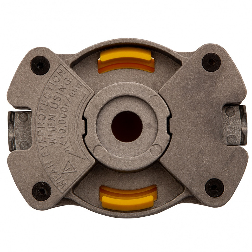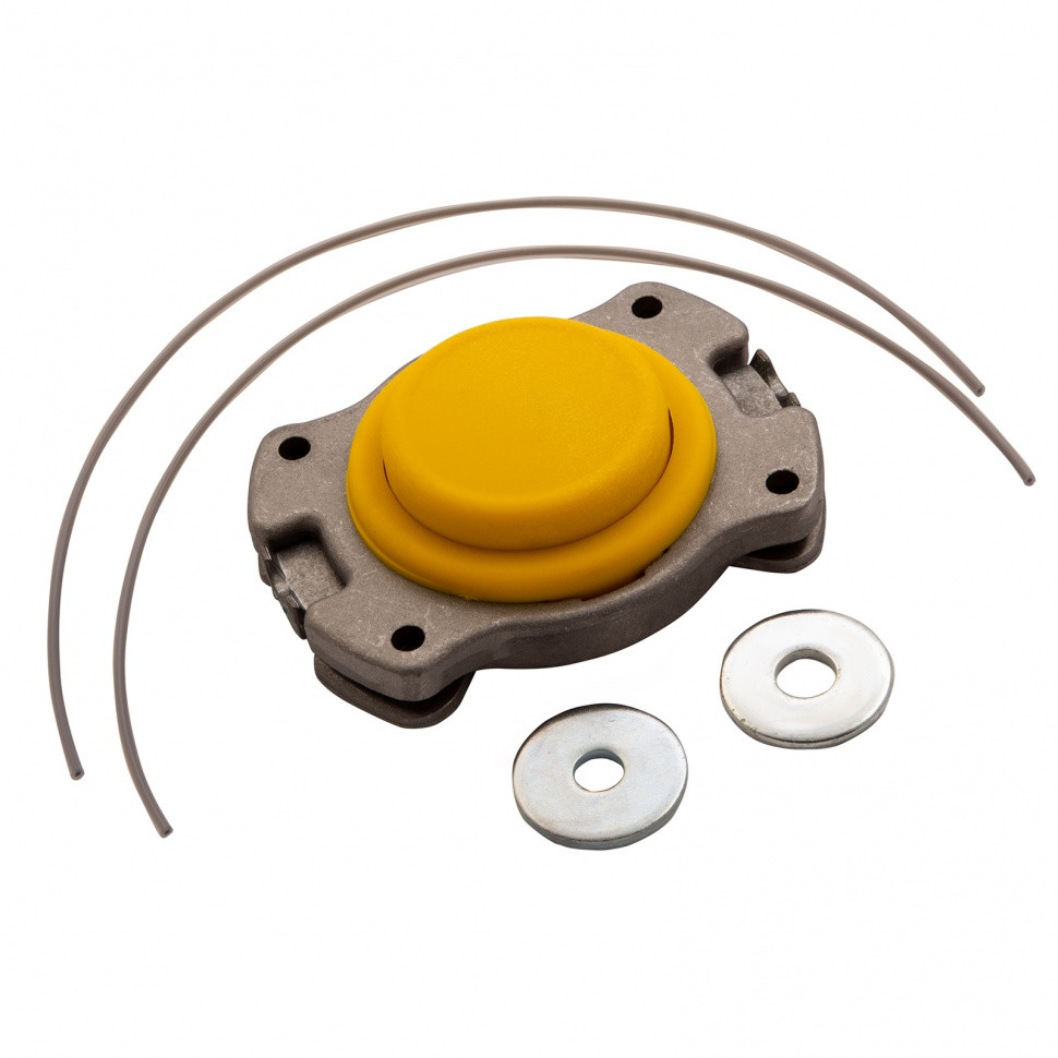- Универсальность — для установки головки используется штатный крепеж триммера, кроме того, в комплект поставки входят шайбы М8 и М10.