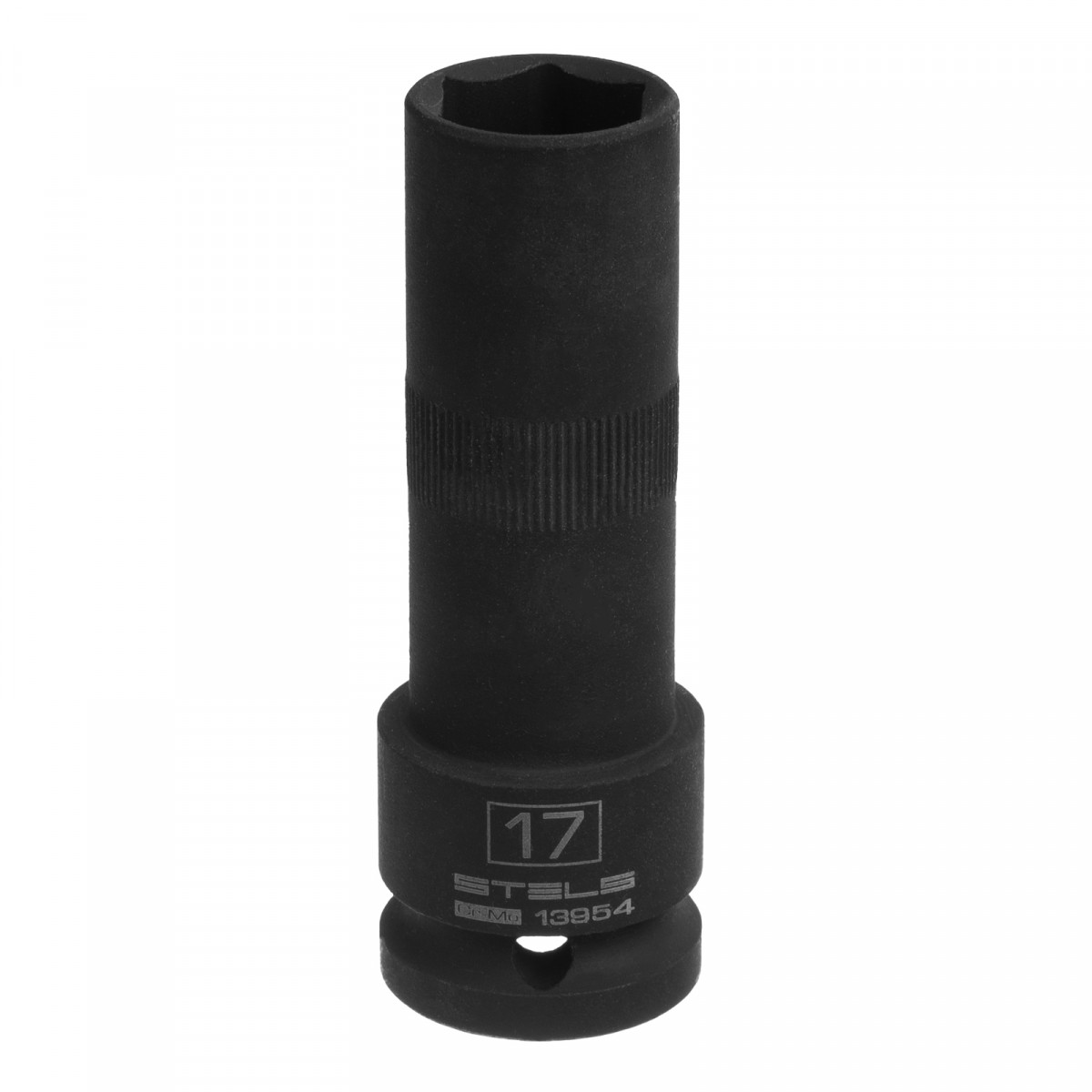 Ударная шестигранная головка Stels 13954 размером 17 мм, с посадочным квадратом 1/2 дюйма, устанавливается на пневматический или электрический гайковерт для работ с колесными дисками. Она легко выдерживает высокие ударные нагрузки и подходит для профессионального применения.