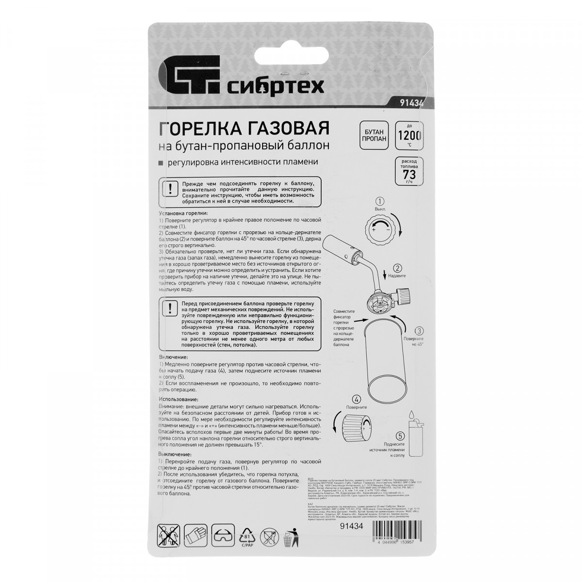 Газовая горелка Сибртех 91434 с диаметром сопла 25 мм предназначена для установки на пропан-бутановый баллон. Используется для нагрева труб и различных деталей, пайки, розжига огня без химических средств. Горелка будет полезна дома, в гараже, на даче или пикнике.