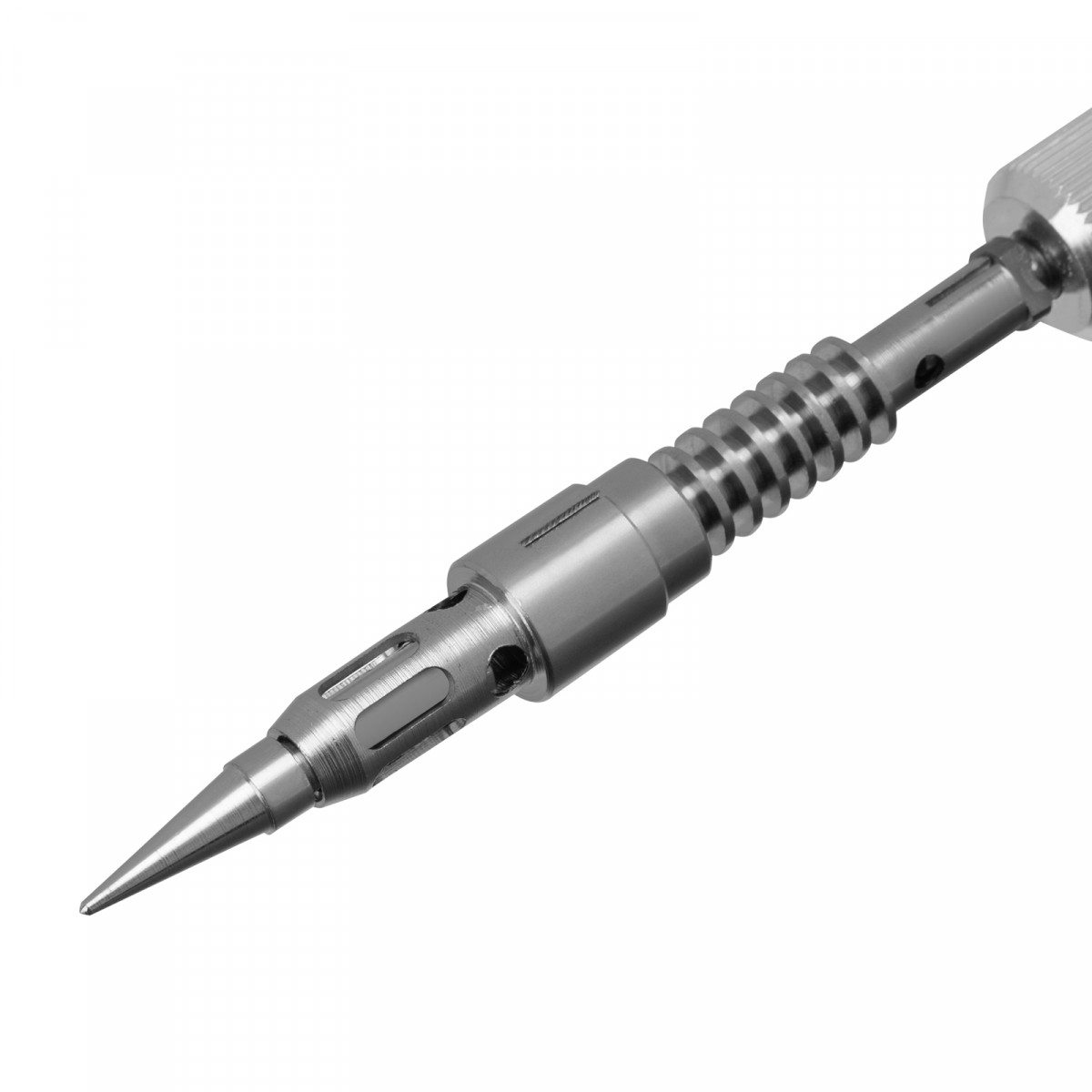 Газовая горелка Sparta 914185 типа «Карандаш», длиной 200 мм, с 2 насадками для пайки, предназначена для получения узкого ровного устойчивого пламени. Может использоваться для розжига костра или мангала, нагрева различных материалов, размораживания замков. Пламя горелки не боится ветра, поэтому ее можно использовать на улице. Горелка подойдет для бытовых целей, будет полезна туристу или радиолюбителю.
