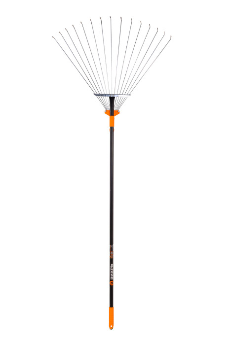 Зубья закреплены на подвижной, скользящей по черенку втулке, которая фиксируется эксцентриковым зажимом в любом необходимом положении, изменяя ширину захвата. Позволяет работать на узких участках.Регулируемая длина черенка позволяет с легкостью и комфортом выполнять уборку садового участка, а также экономит место при хранении и транспортировке.