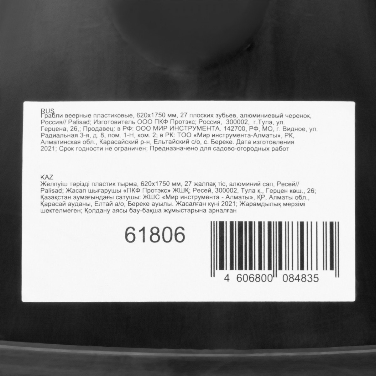 Грабли веерные пластиковые, 620 х 1750 мм, 27 плоских зубьев, алюминиевый черенок, Palisad
