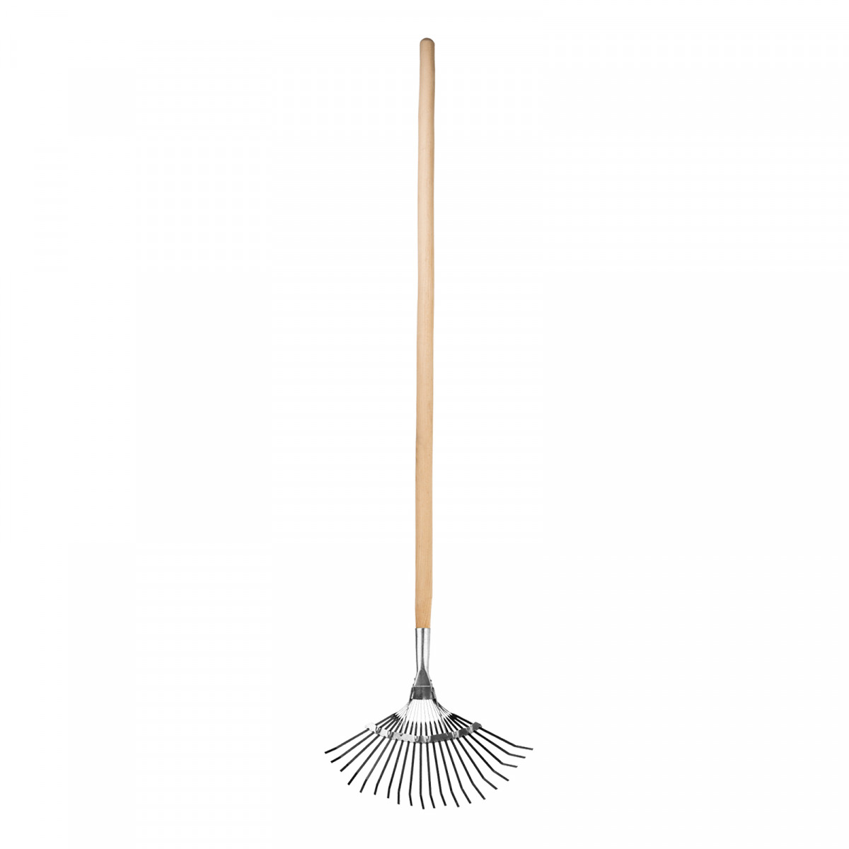 Грабли веерные стальные, 385 х 1450 мм, 20 плоских зубьев, деревянный черенок, Сибртех