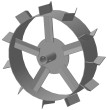 Колеса выполнены из сплошной ленты металла по ободу грунтозацепа. На такие колеса возможно налипание грунта, но они менее подвержены деформациям."