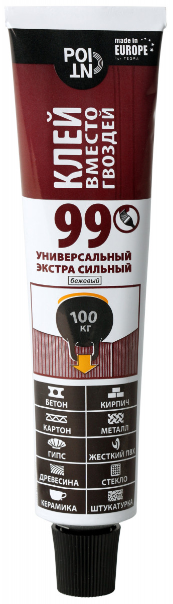 Монтажный клей на базе каучука для очень прочного склеивания при ремонтных работах. Нет аналогов, т.к. клей на каучуковой базе, а не на водной, соответственно, конечная сила схватывания значительно выше. Способен склеивать любые поверхности (стекло, пластик и т.д.). Например, Момент - на водной основе - поэтому для прочного склеивания должна быть хотя бы одна впитывающая поверхность, в отличие от POINT.