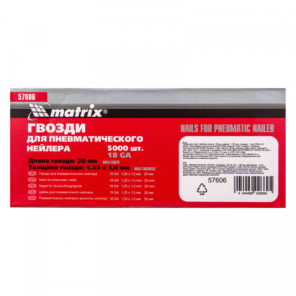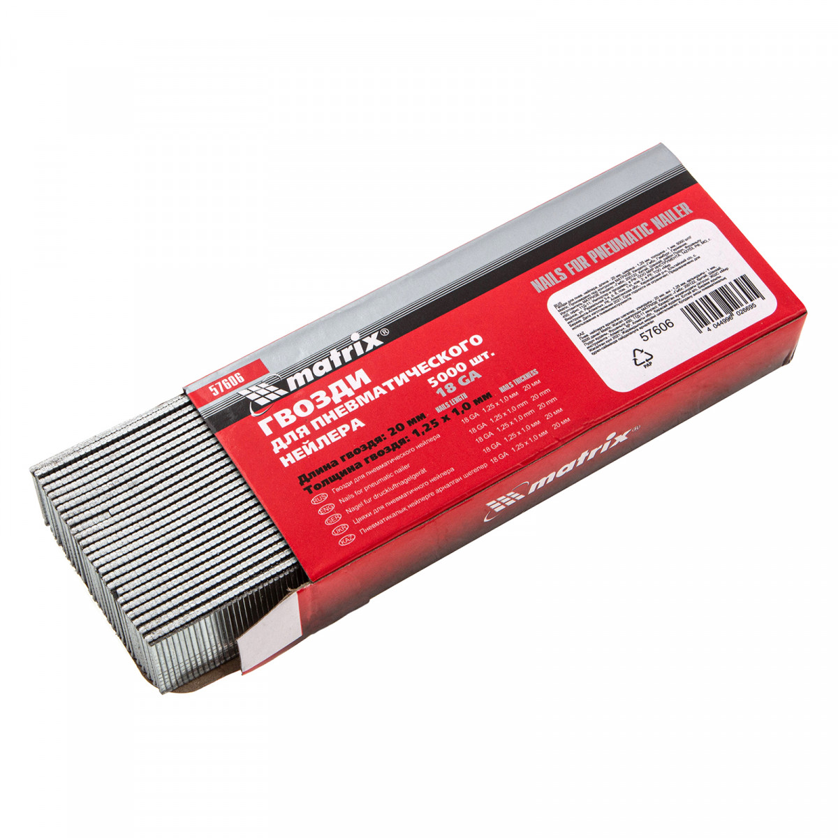 Гвозди для пневматического нейлера, длина 20 мм, ширина 1.25 мм, толщина 1 мм, 5000 шт Matrix