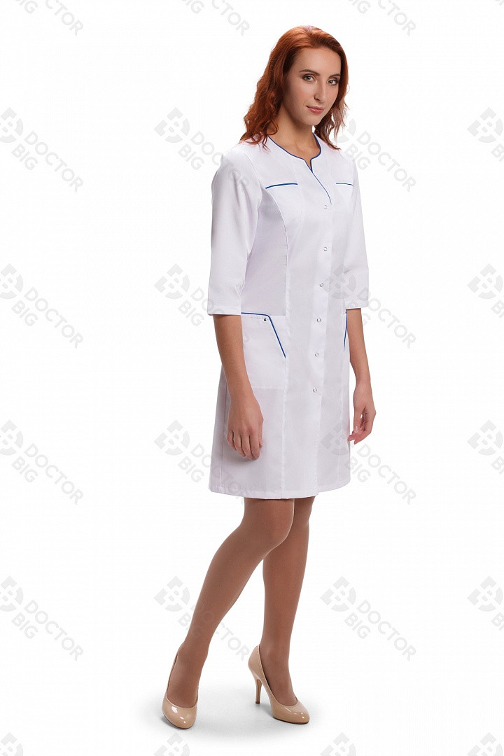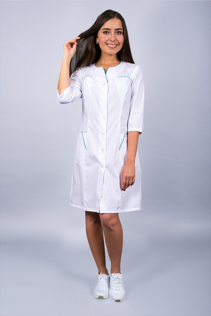 Халат медицинский №242 (тк.тиси) DOCTORBIG, белый/бирюзовый